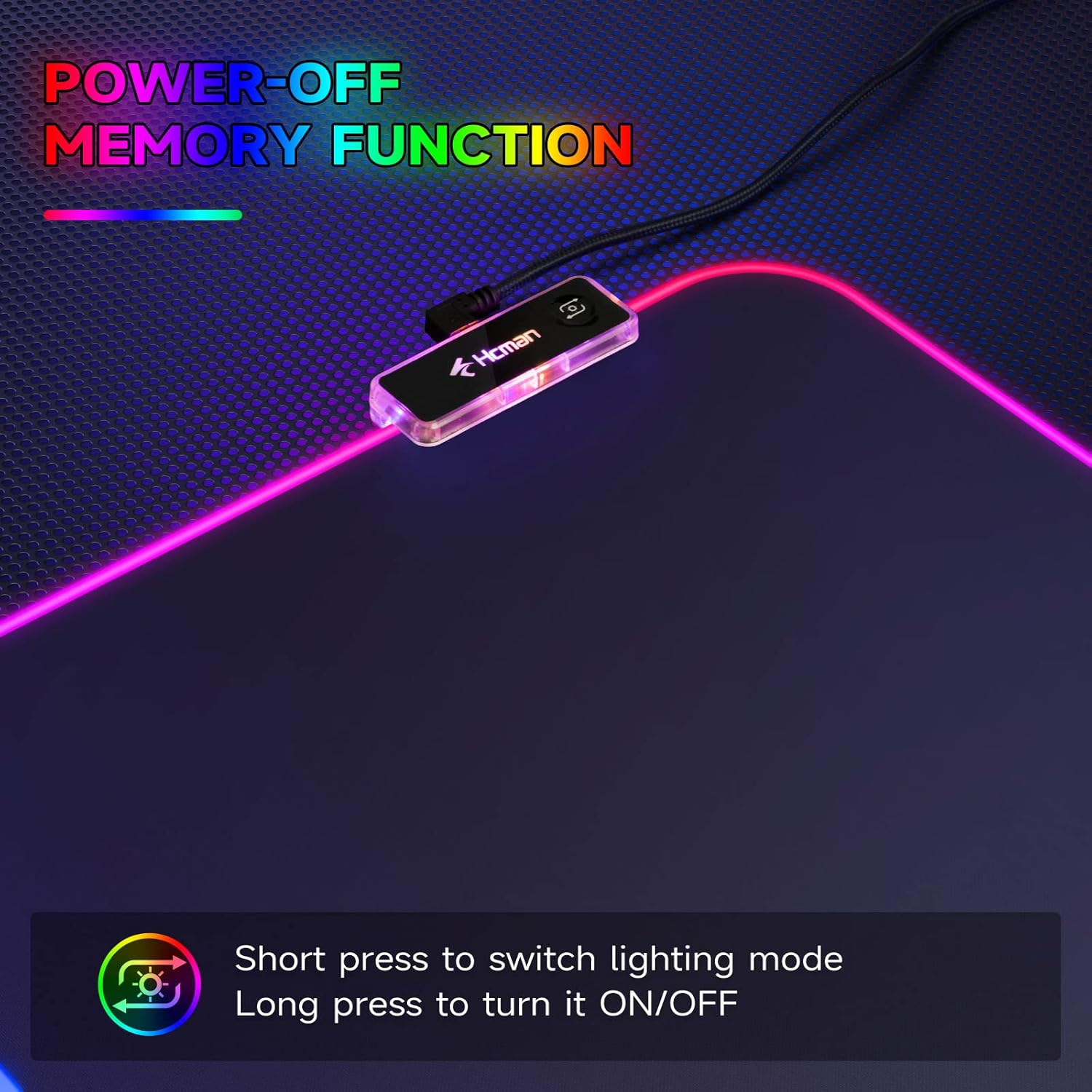 Mauspad mit harter Oberfläche: Um Kontrolle und Geschwindigkeit in Einklang zu bringen, verfügt das Hcman RGB-Lichtmauspad über eine harte, hochpräzise mikrotexturierte Oberfläche für Genauigkeit und mühelose Geschwindigkeit.