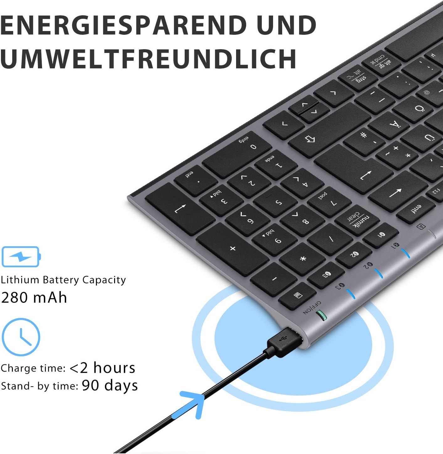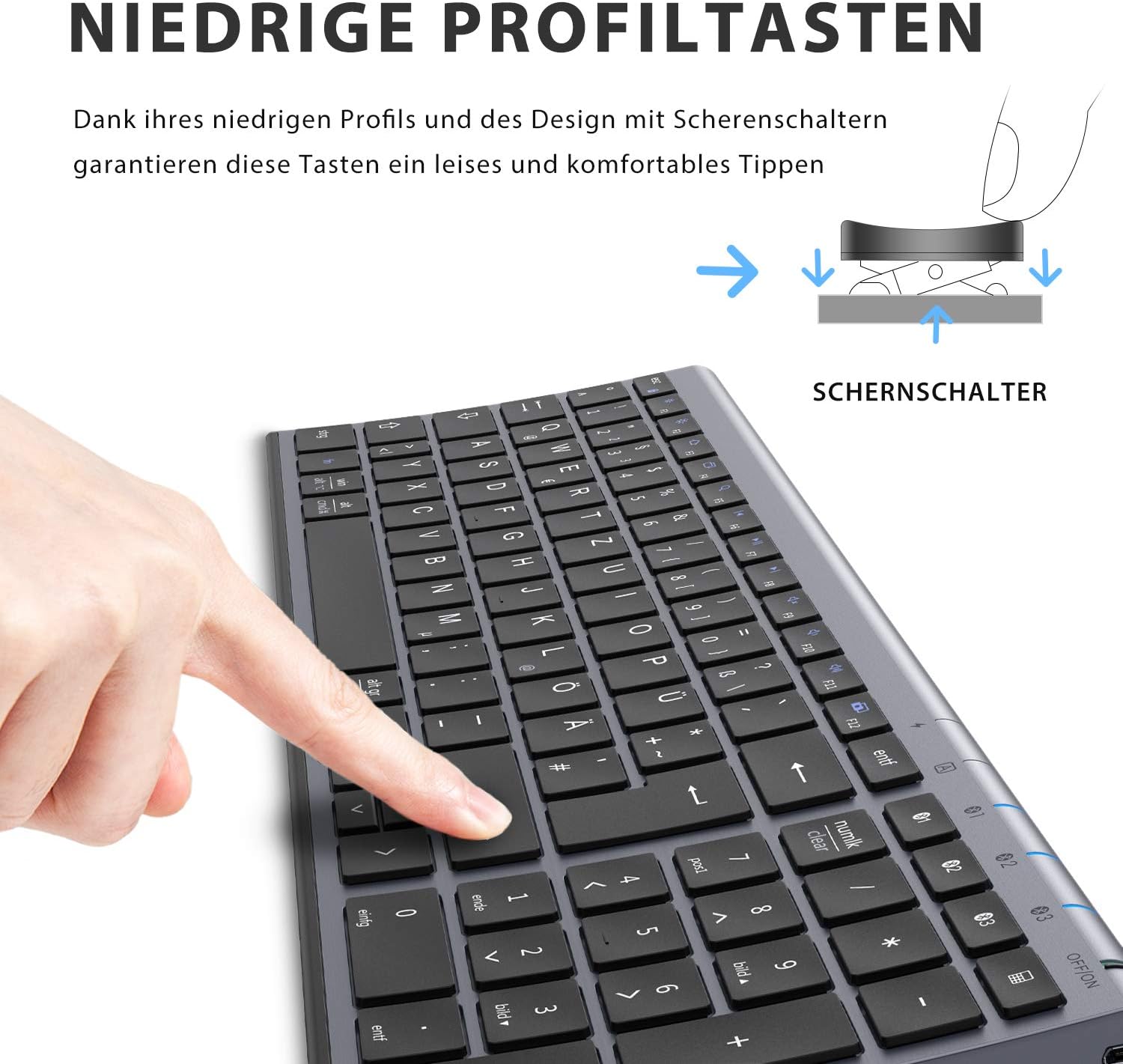 iClever Bluetooth Keyboard, Wireless Keyboards with 3 Bluetooth Channels, Wireless Keyboard Rechargeable, for Windows PC/Chrome/Mac – Graphite, German QWERTZ Layout