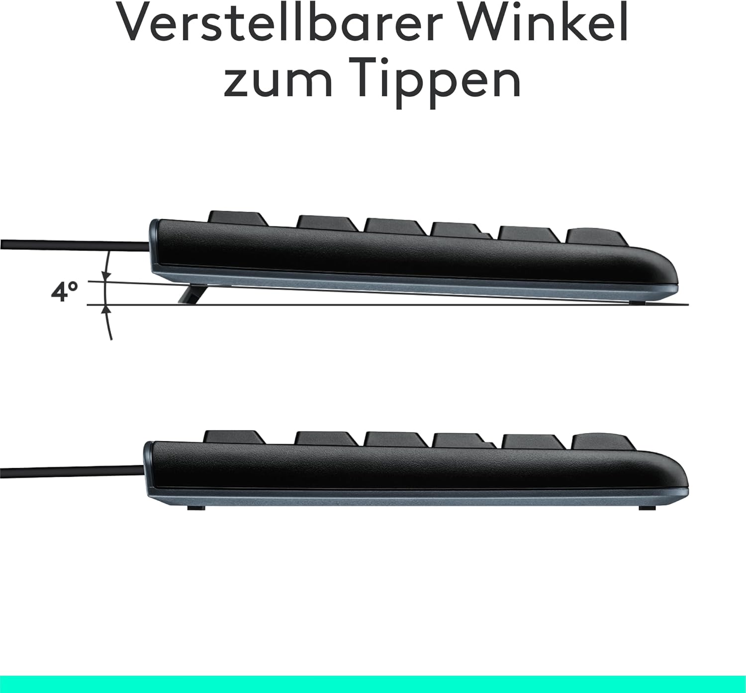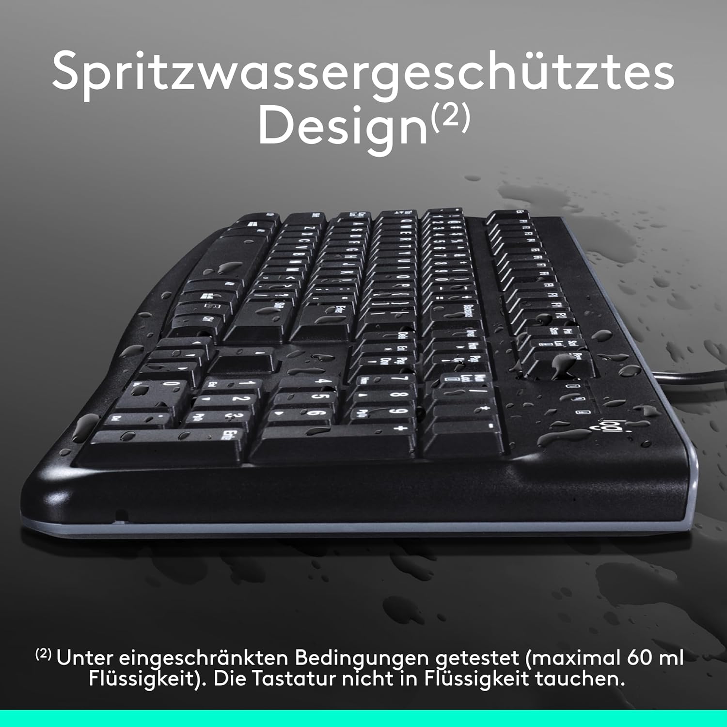 Spritzwassergeschütztes Design(2), langlebige Tasten und robuste, höhenverstellbare Klappfüße: An dieser Tastatur werden Sie lange Freude haben.