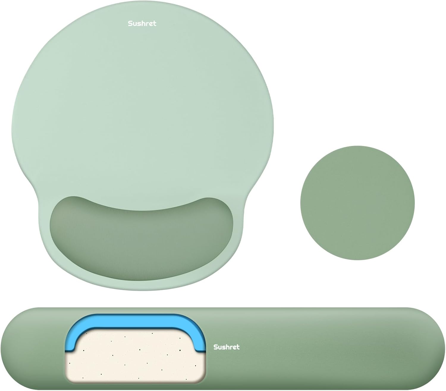 Mouse Pad & Keyboard Wrist Rest, 3-in-1 Ergonomic Gel Memory Foam Mouse Pad with Wrist Support, Gaming Mouse Pad Arm Rest for Computer, Office, Desk Accessories, Green