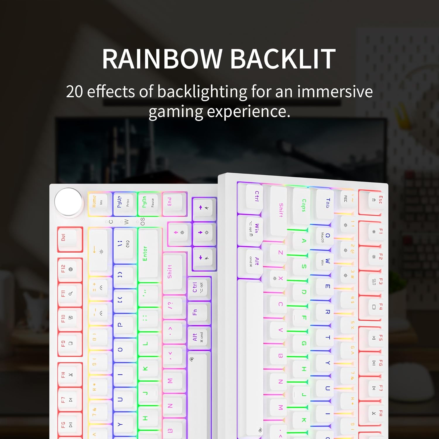 Die 75 % Gaming-Tastatur spart Platz im Vergleich zu 104-Tasten-Tastaturen, behält aber die Pfeiltasten bei und ist praktischer als eine 60 % mechanische Tastatur. Es bietet Ihnen eine hohe Effizienz und ein gutes Tastgefühl beim Spielen und Arbeiten, ohne dass Sie sich durch Tastenkombinationen gestört fühlen.
