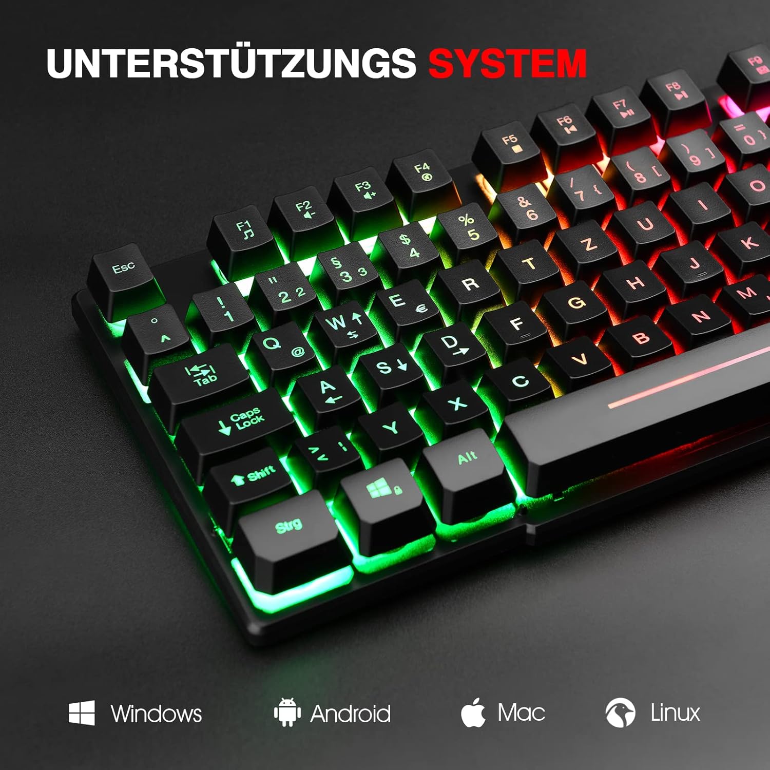 - 🌈 RGB-Beleuchtung: Stylische Optik für jedes Gaming-Setup