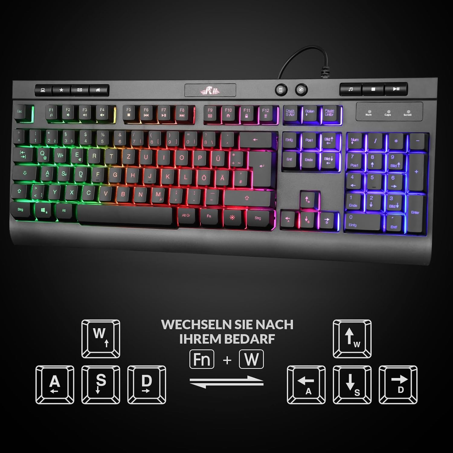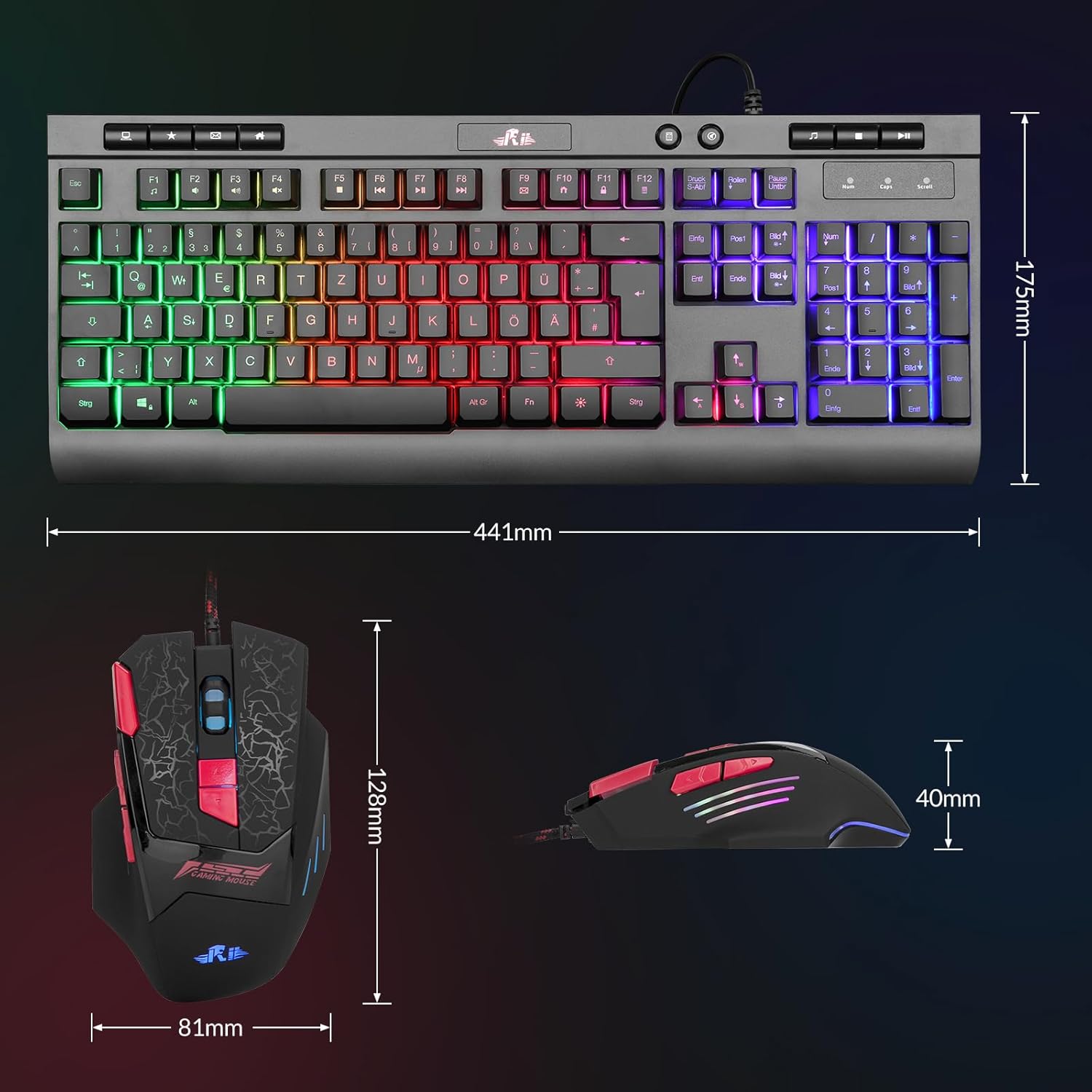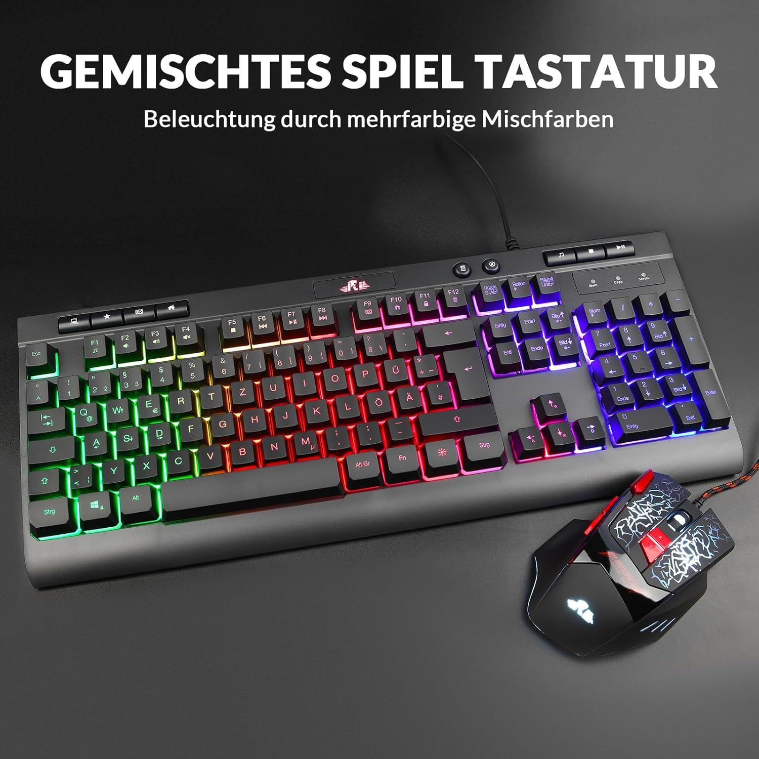 Rii Mouse and Keyboard Gaming, Gaming Keyboard with Mouse is Ergonomic, PS5 Keyboard and Mouse with German QWERTZ Layout, Gaming Set for PC/Laptop/Xbox/PS4 RK900