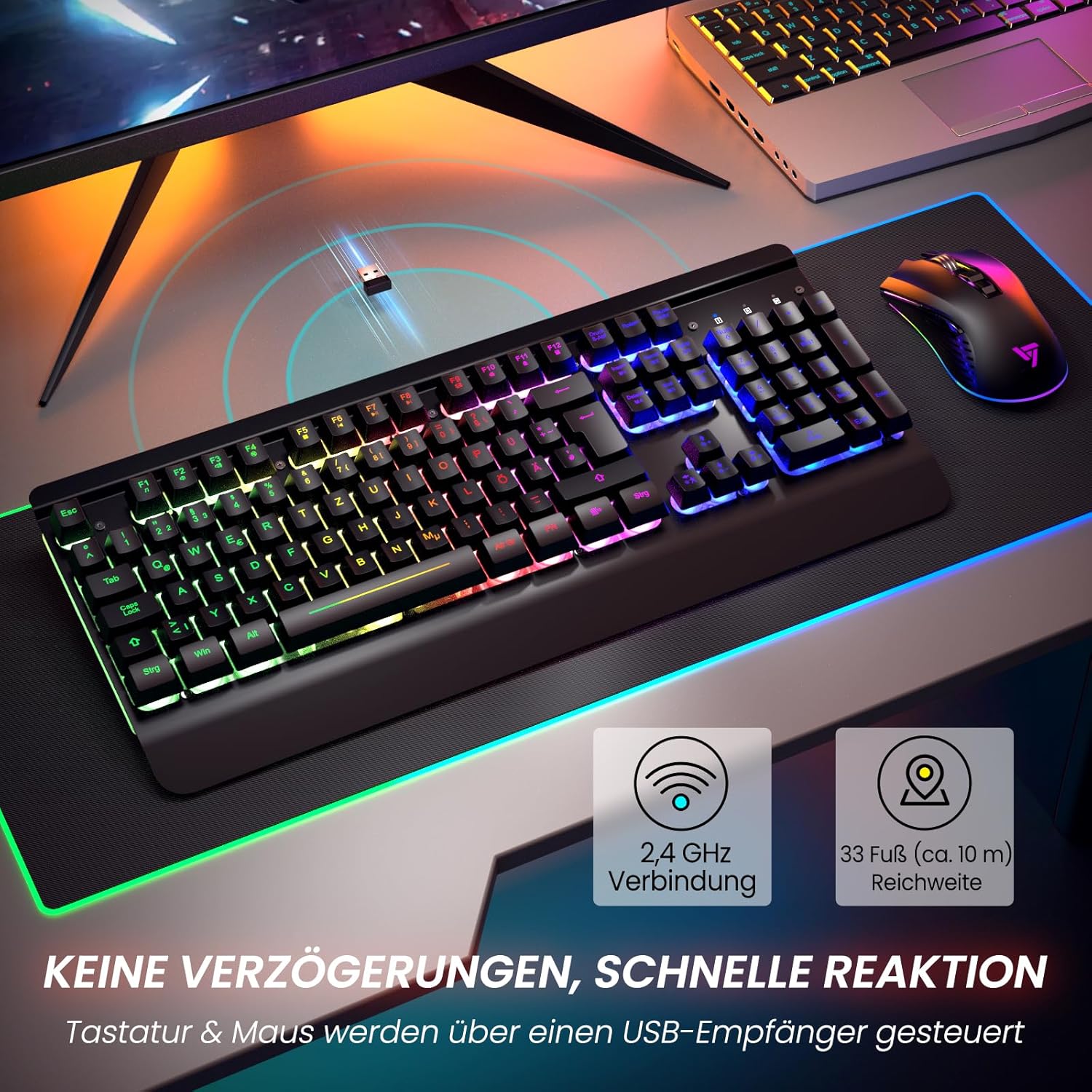 Produktbeschreibung RISOPHY Gaming Tastatur Maus Set Kabellos Wiederherstellbar