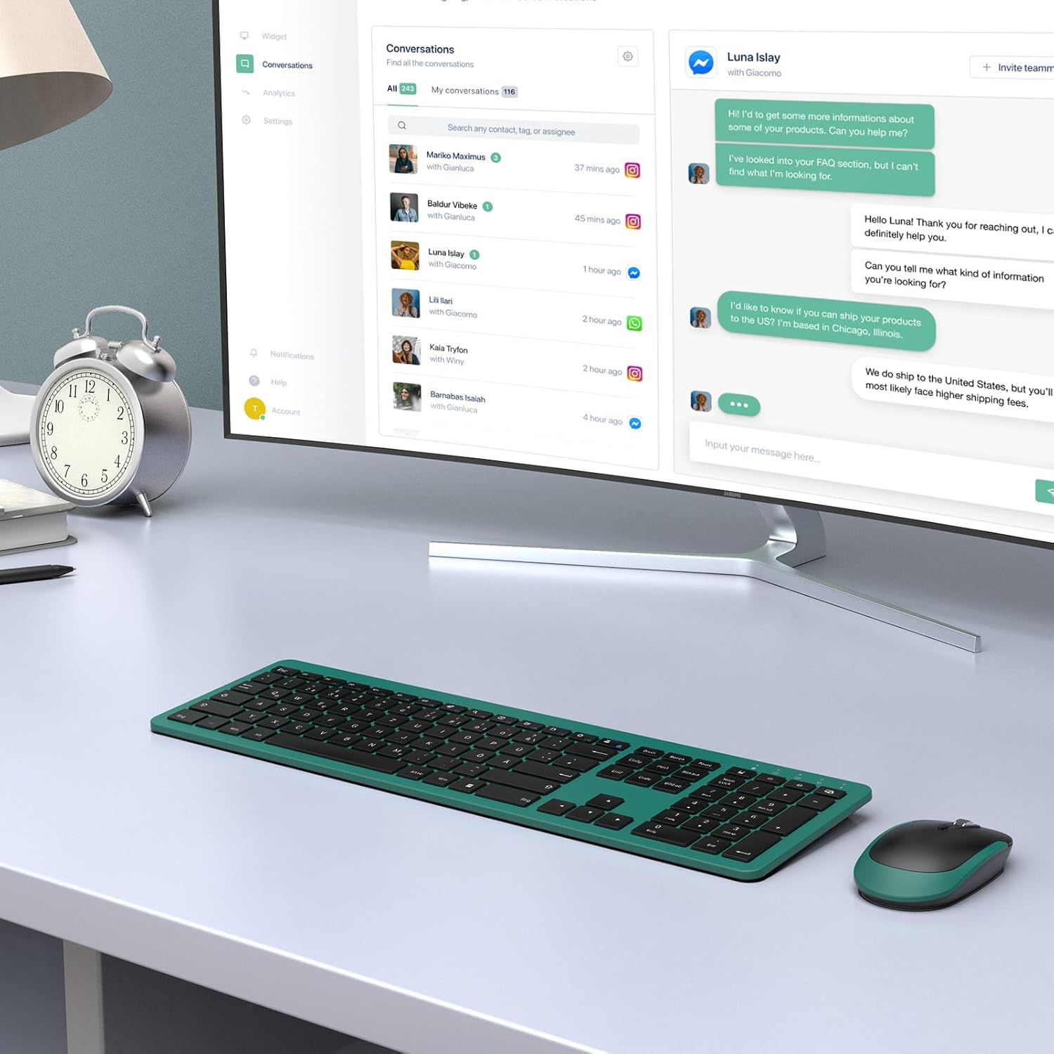 seenda SK38-3 Wireless Keyboard Mouse Set, Ultra Thin Rechargeable Wireless Keyboard Mouse Set, Ergonomic Keyboard Wireless with Silicone Dust Cover for PC/Laptop/TV, DE QWERTZ Layout, Black & Green