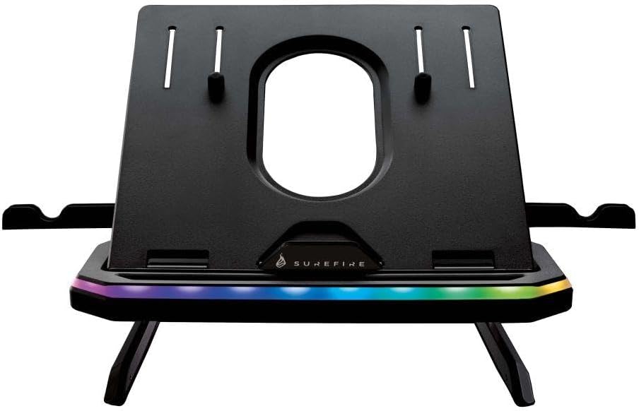SureFire Portus X1 Gaming Laptop Stand, Notebook Stand Height Adjustable with RGB Lighting, Holder for Laptops with 10, 17.3 Inches, Tablet Risers with Ventilation for the Desk
