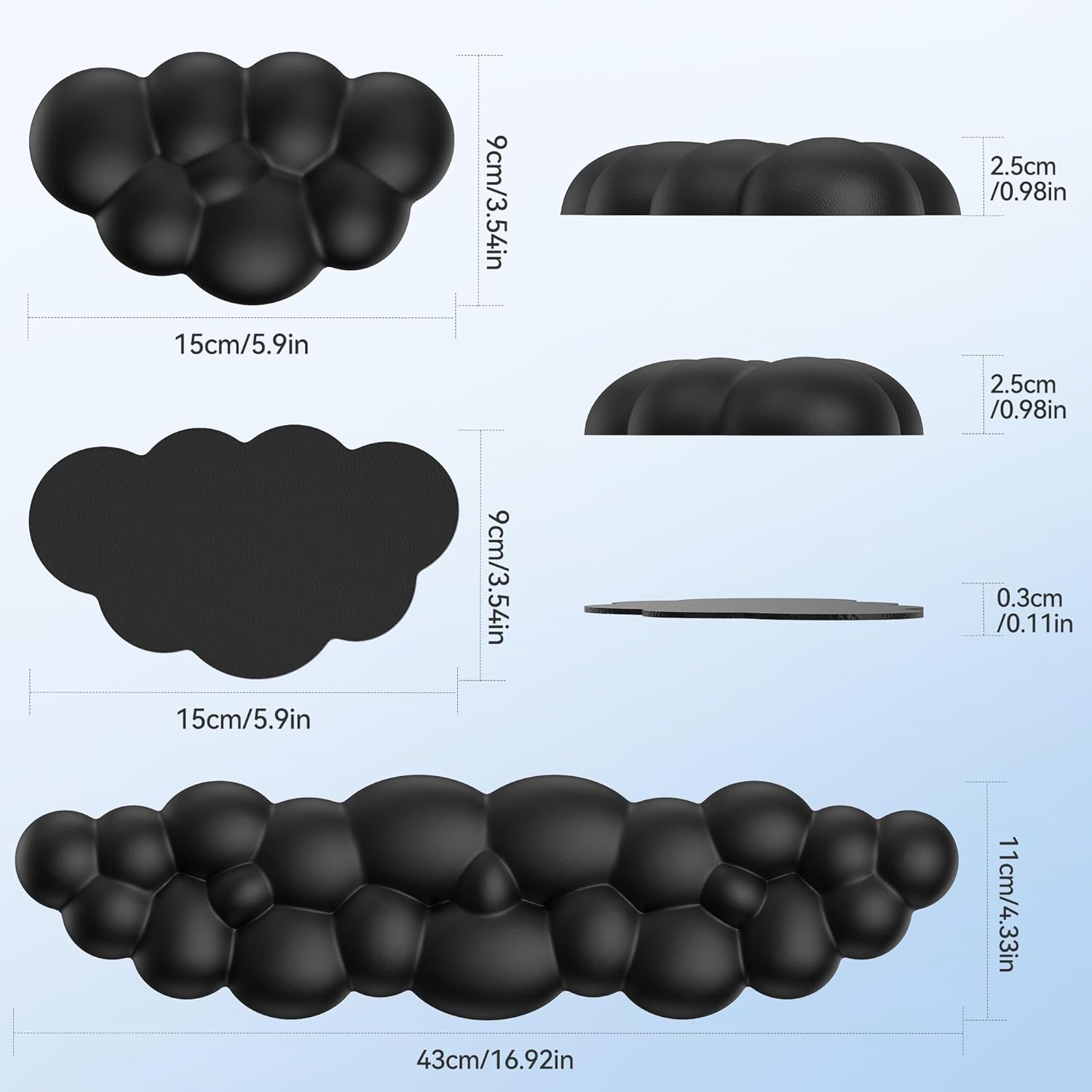 TECKNET Wolke Wrist Rest Keyboard, Ergonomic Cloud Palm Rest Keyboard with PU Leather Memory Foam, Cute Keyboard Wrist Support for PC / Gaming / Hand Pad / Computer, Black