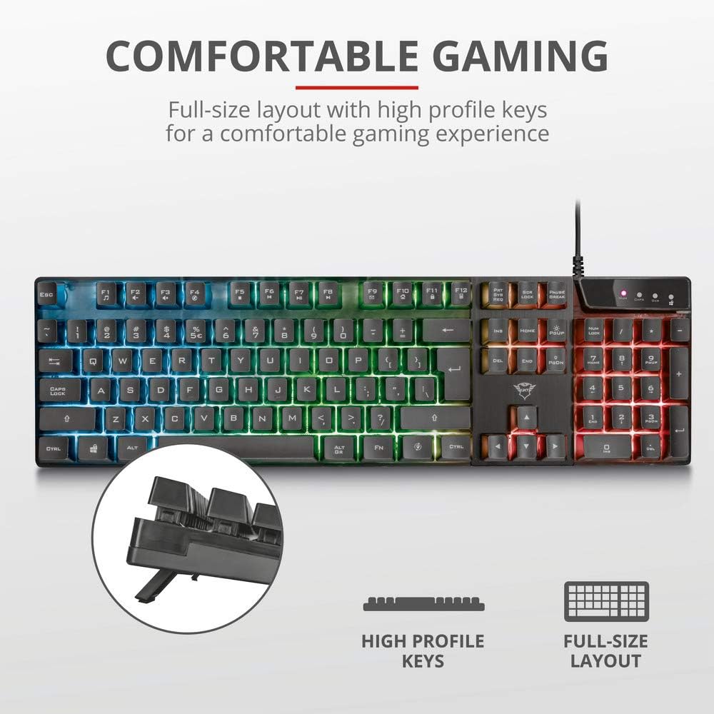 Trust Gaming GXT 835 Azor Gaming Keyboard Italian Layout QWERTY USB Anti-Ghosting Keyboard with LED Backlit RGB for PC Computer Laptop Mac – Black