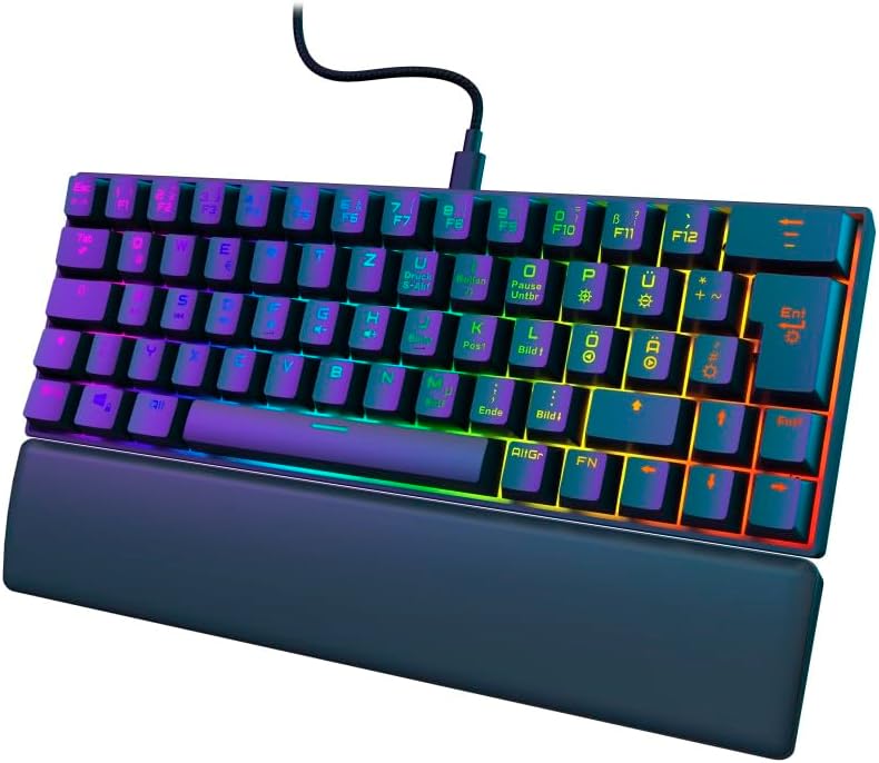 uRage Exodus 760 Mechanical Mini Gaming Keyboard with Removable Wrist Rest, Full RGB Lighting, Gaming Software, Compact Format, Outemu Red Switches, QWERTZ Layout, Black
