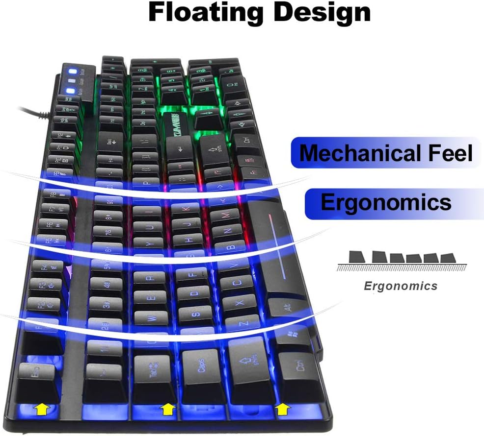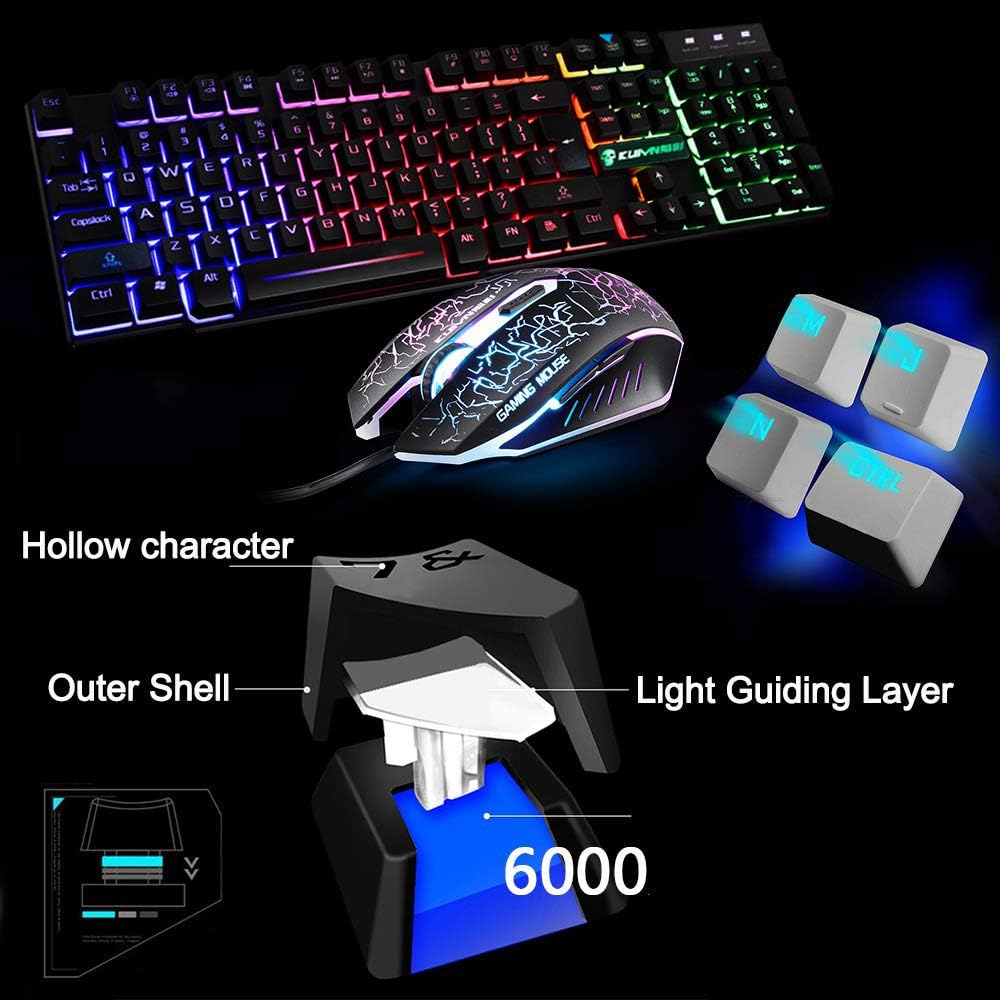 Regenbogen-LED-Hintergrundbeleuchtung: Tastatur und Maus verfügen über eine dreifarbige LED-Hintergrundbeleuchtung für den Einsatz bei Nacht, sehen fantastisch aus und bieten Ihnen ein hervorragendes visuelles Erlebnis im Nachtbetrieb.