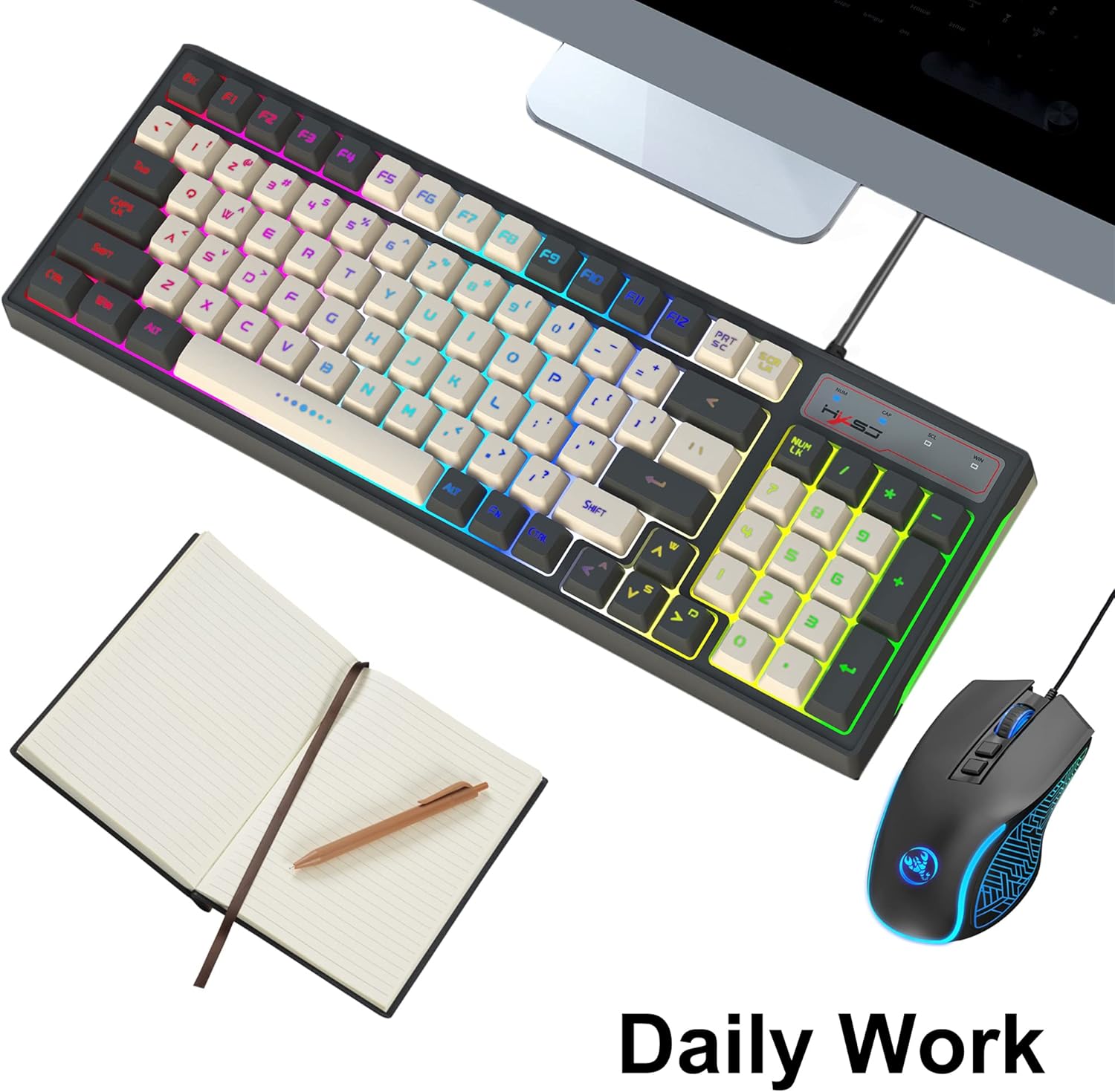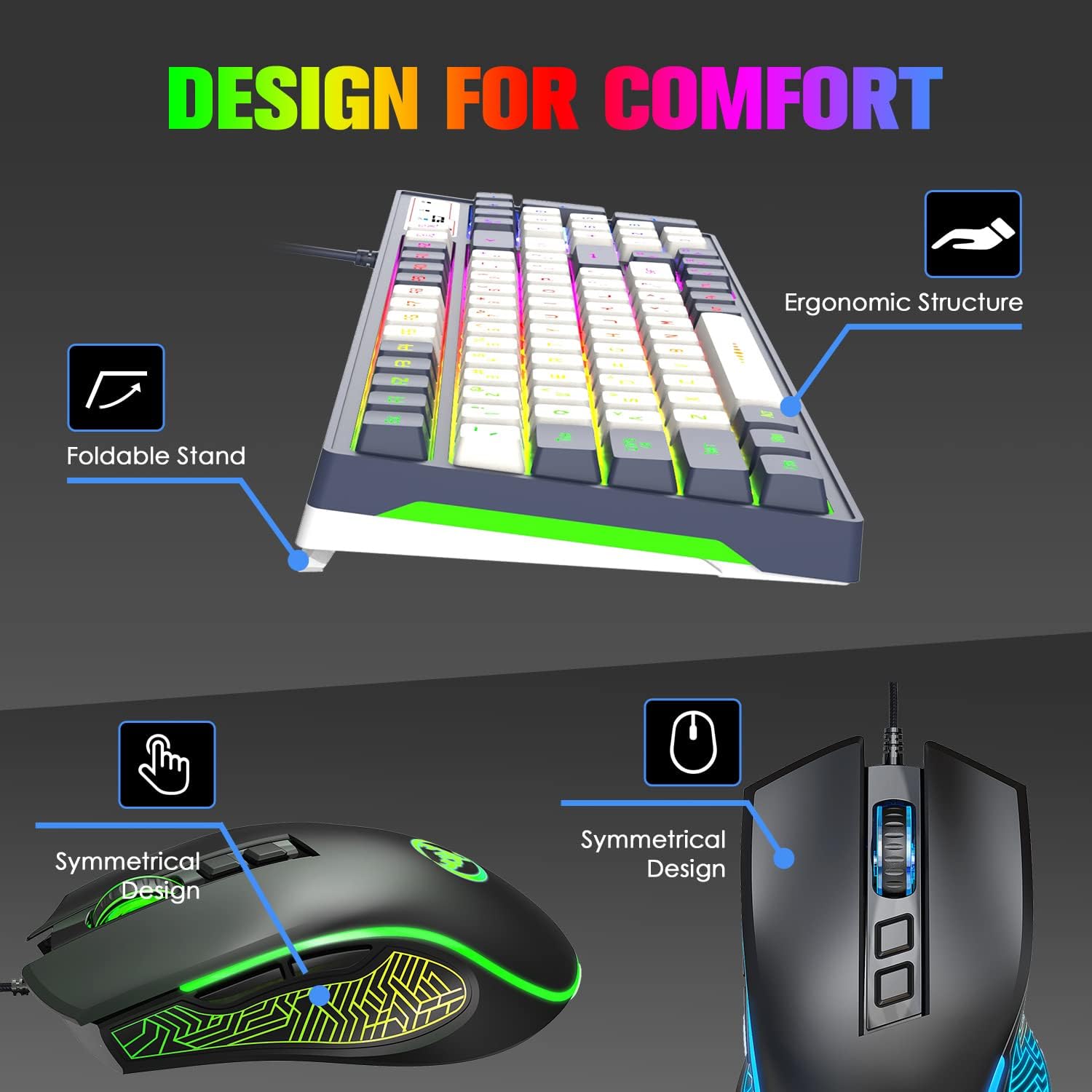 3-in-1-Kombination aus kabelgebundener Gaming-Tastatur, Maus und Mauspad, mittelkompakt, mit allen benötigten Funktionen, perfekt für Spiele, Arbeit oder den täglichen Gebrauch