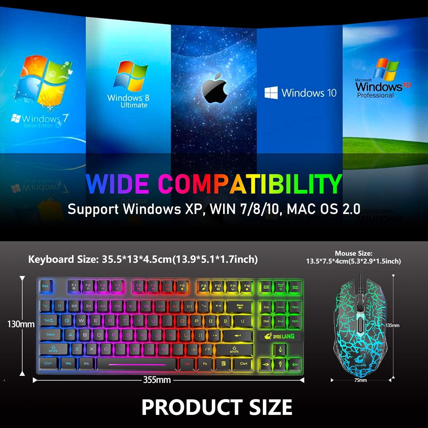 Breite Kompatibilität: ergonomisches Layout, platzsparendes Design, leuchtende Zeichen, abnehmbare Tastenkappen, FN-Tastenkombination, Anti-Ghosting-Funktion, integrierter wiederaufladbarer Akku mit hoher Kapazität, Plug-and-Play, perfekt für Spiele oder den täglichen Gebrauch, kann kompatibel mit Windows 2000/Windows XP/Vista/Windows 7/Windows 8/Windows 10 sein. PC Laptop Computer Mac, der Windows XP, Mac OS 2.0 unterstützt.