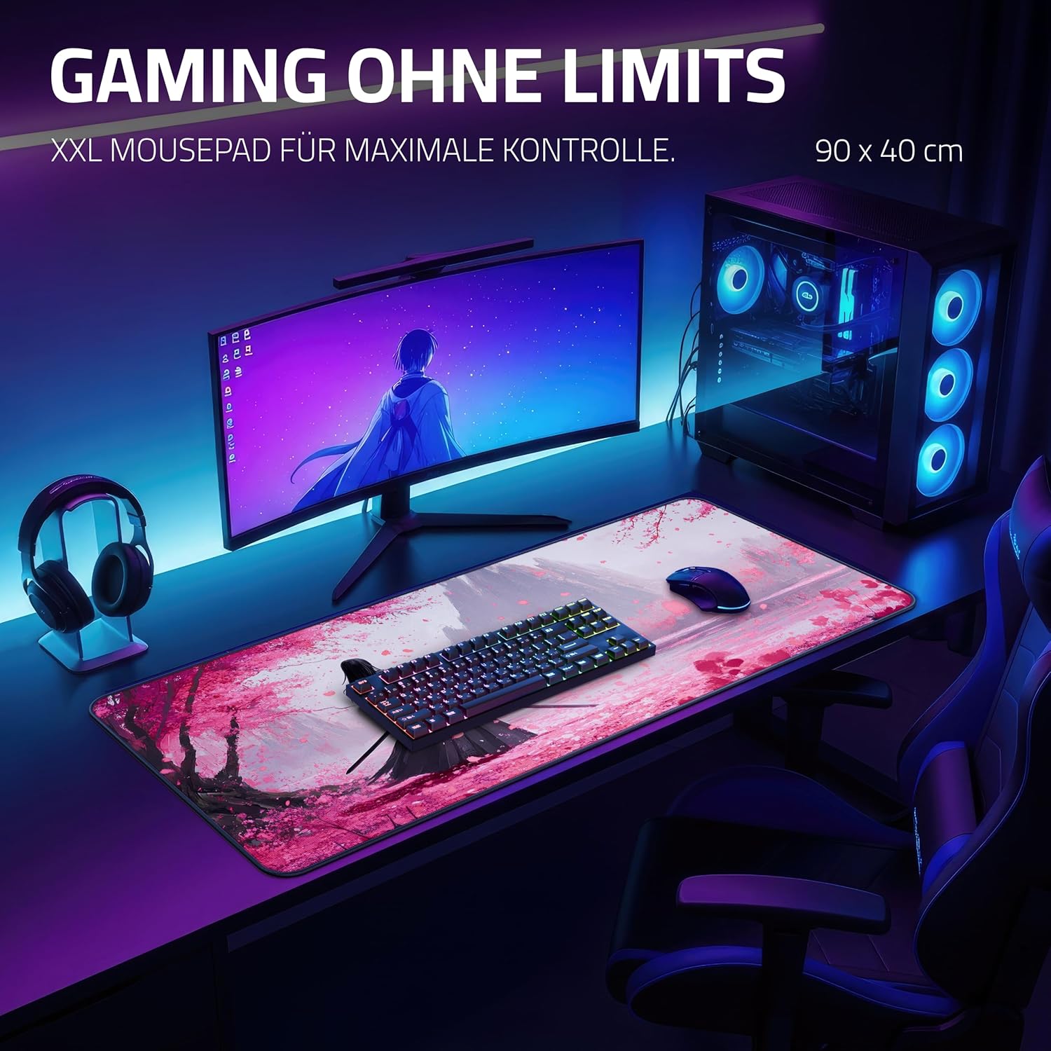 Extra großes Mauspad 900 x 400 mm – ideal für Maus und Tastatur. Als XXL-Gaming-Mauspad bietet es Kontrolle und Komfort für FPS, MOBA & Office – für Ihr Setup