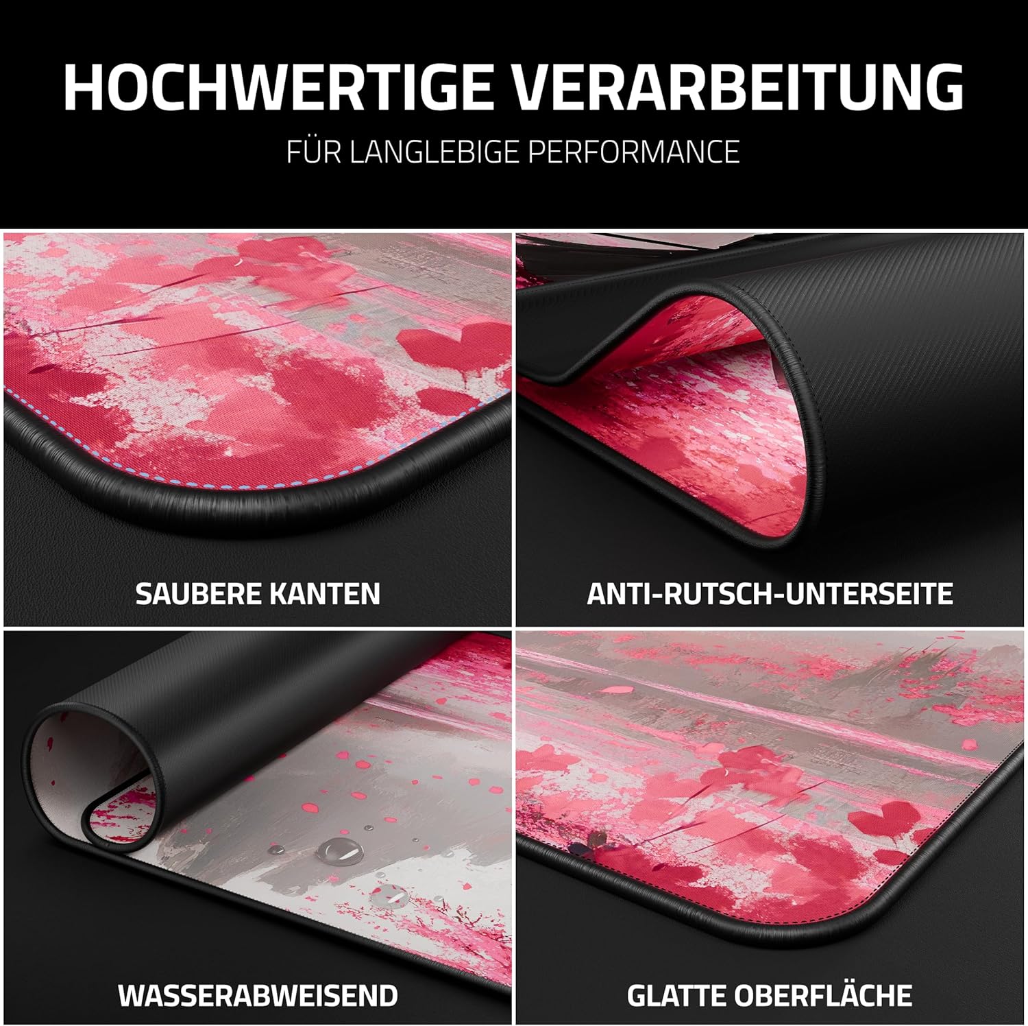 Rutschfeste Gummiunterseite und wasserabweisende Oberfläche – ob als Mauspad für den PC oder XXL-Schreibtischunterlage, Ihr Tisch bleibt geschützt – auch bei langen Gaming-Sessions.