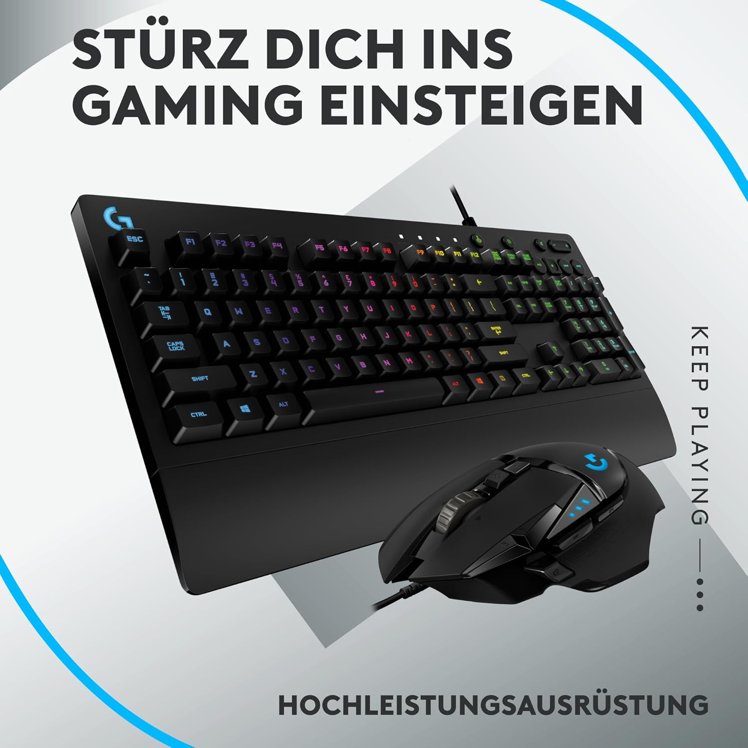 Stürz dich ins Gaming mit jener G502 HERO RGB-Gaming-Mouse und jener G213 Prodigy Gaming-Tastatur: dein preisgekrönte Tastatur-Mouse-Set mit anpassbaren LIGHTSYNC RGB und spieletauglicher Leistung