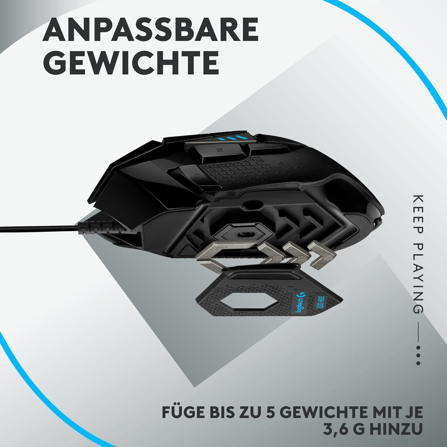 Passe die Gesamtheit z. Hd. deine Zwecke an. Im Lieferumfang jener G502 HERO Mouse sind fünf 3,6-g-Gewichte enthalten. Positioniere jeder oder nur wenige von ihnen an den Stellen.
