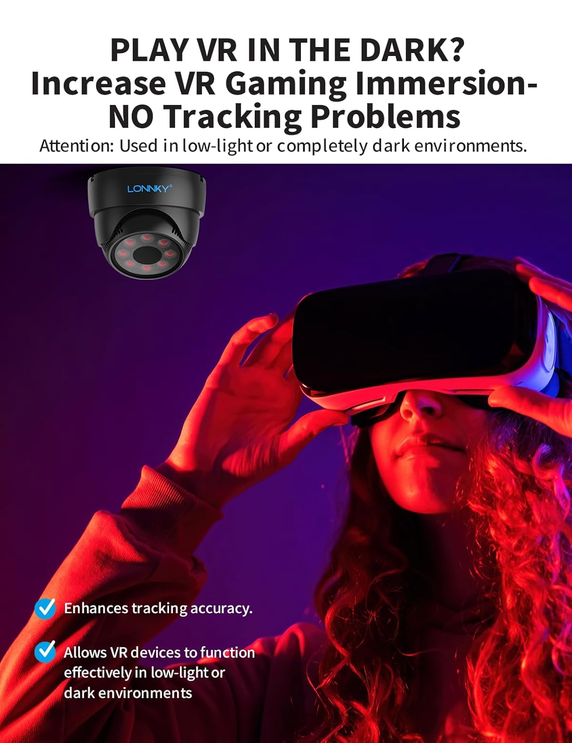 Weite Kompatibilität — Lonnkys Infrarotbeleuchter funktioniert mit IP-Kameras, CCTV und verschiedenen VR-Systemen (Quest, Quest2, Quest3, PS VR2, PS5 VR2)