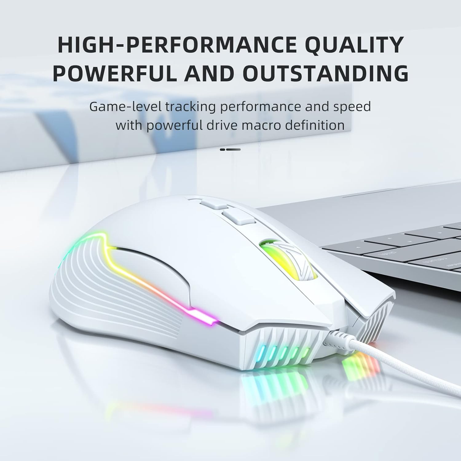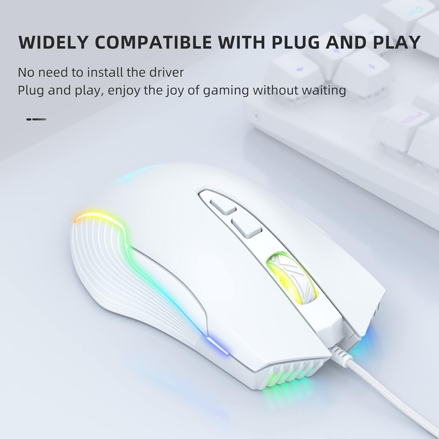 Ergonomisches Plan: Mit ergonomischem und symmetrischem Plan ist die weiße Gaming-Mouse zu Gunsten von verschiedene Griffpositionen probat. Es ist resistent gegen Fingerabdrücke, Talg und Schweiß und gibt ein tolles Handgefühl