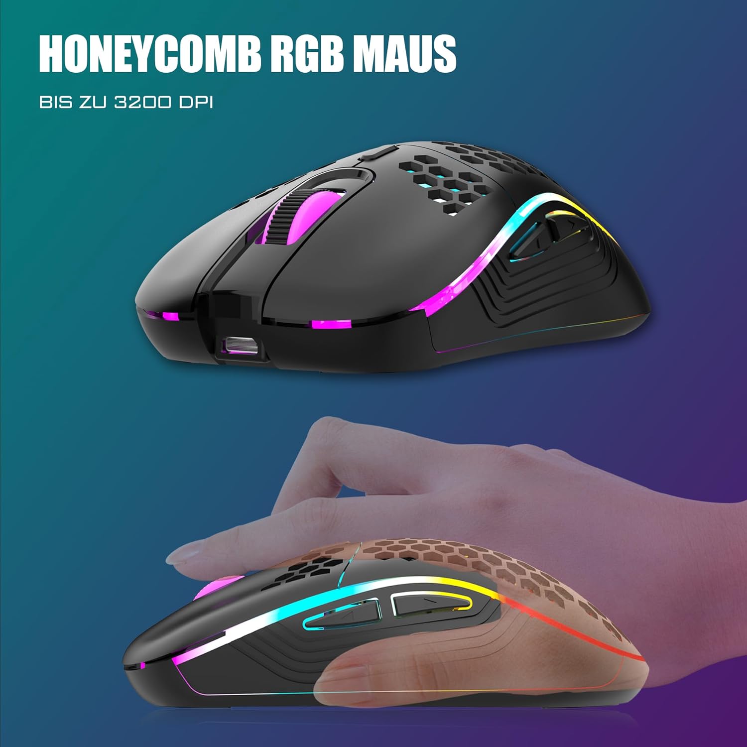 【75% Kompakte Mini-Tastatur & Ultraleichte Mouse mit Wabenschale】Die ultimative Zehntasten-Tastatur (85 Tasten), die dedizierte Medientasten und Pfeiltasten beibehält, macht praktischer wie die 60 % Tastatur,maximiert den Raum. Die gestaltete Mouse mit perforierter Wabenschale ist ergonomisch gestaltet und wiegt nur 65 (+-5) Gramm, welches sie flexibler und komfortabler macht, ohne zu müde werden.