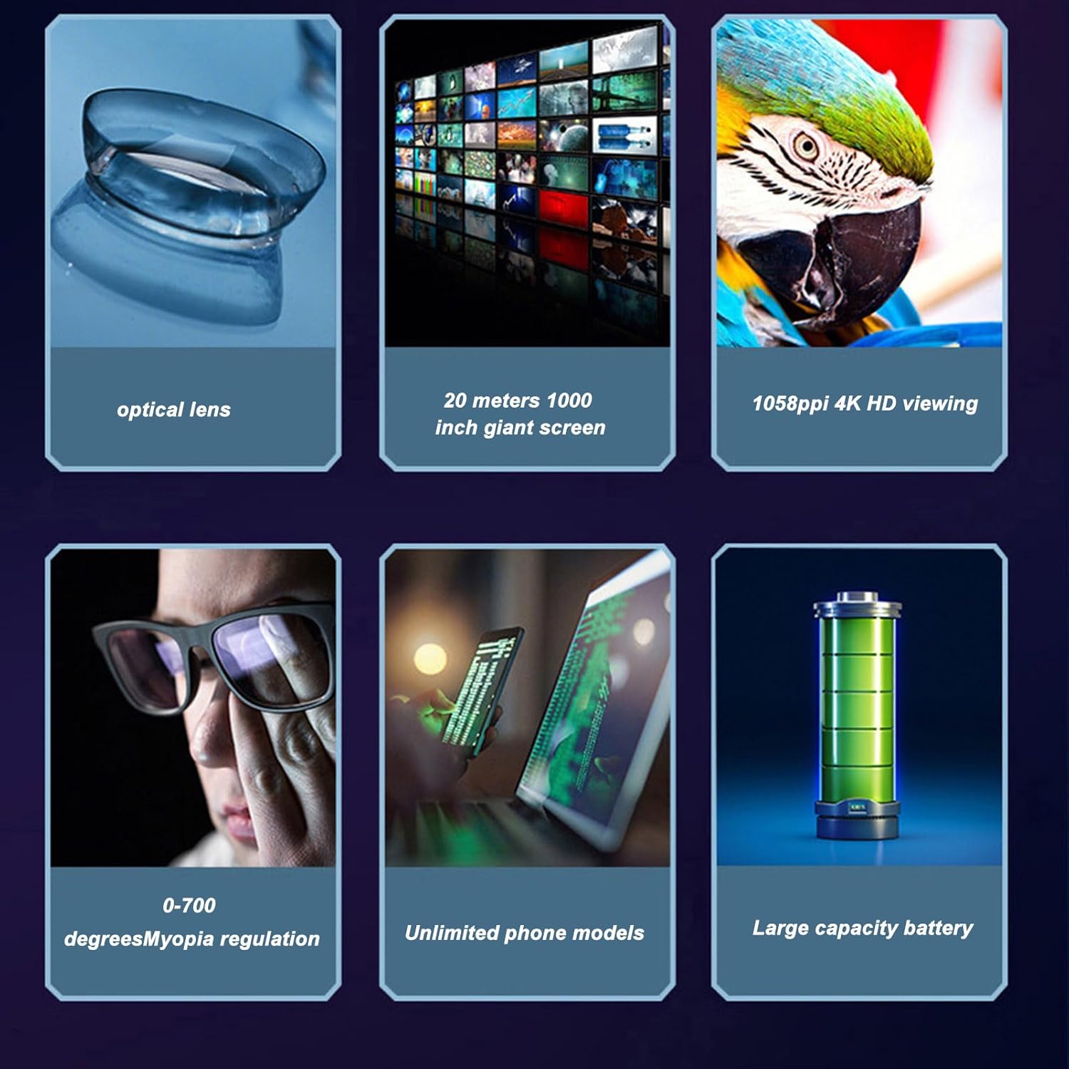 UNTERHALTUNG AUF KINO-NIVEAU: Mit einer 4K-HD-3D-Sichtbrille und einem 4000-mAh-Akkumulator mit großer Kondensator können Sie zu Hause, unterwegs oder an jedem beliebigen Ort in Unterhaltung hinaus Kinoniveau stippen. Erstellen Sie Ihr mobiles Theater.