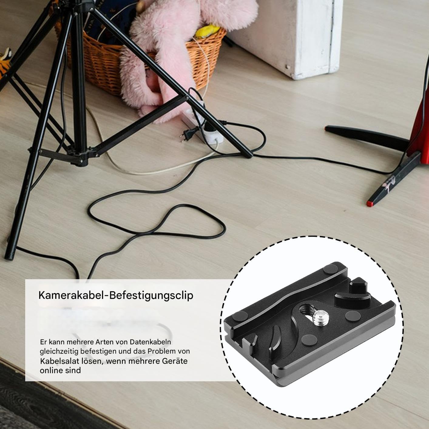 Stabile Fixierung: Die Kamerakabelklemme sorgt dafür, dass die Kabel stabil und gut organisiert bleiben und verhindert unerwünschte Schwankungen, die das Filmen beeinträchtigen könnten. Es ist ein effektives Werkzeug für kreative Menschen, die ein zuverlässiges Kabelmanagement im Innen- und Außenbereich suchen