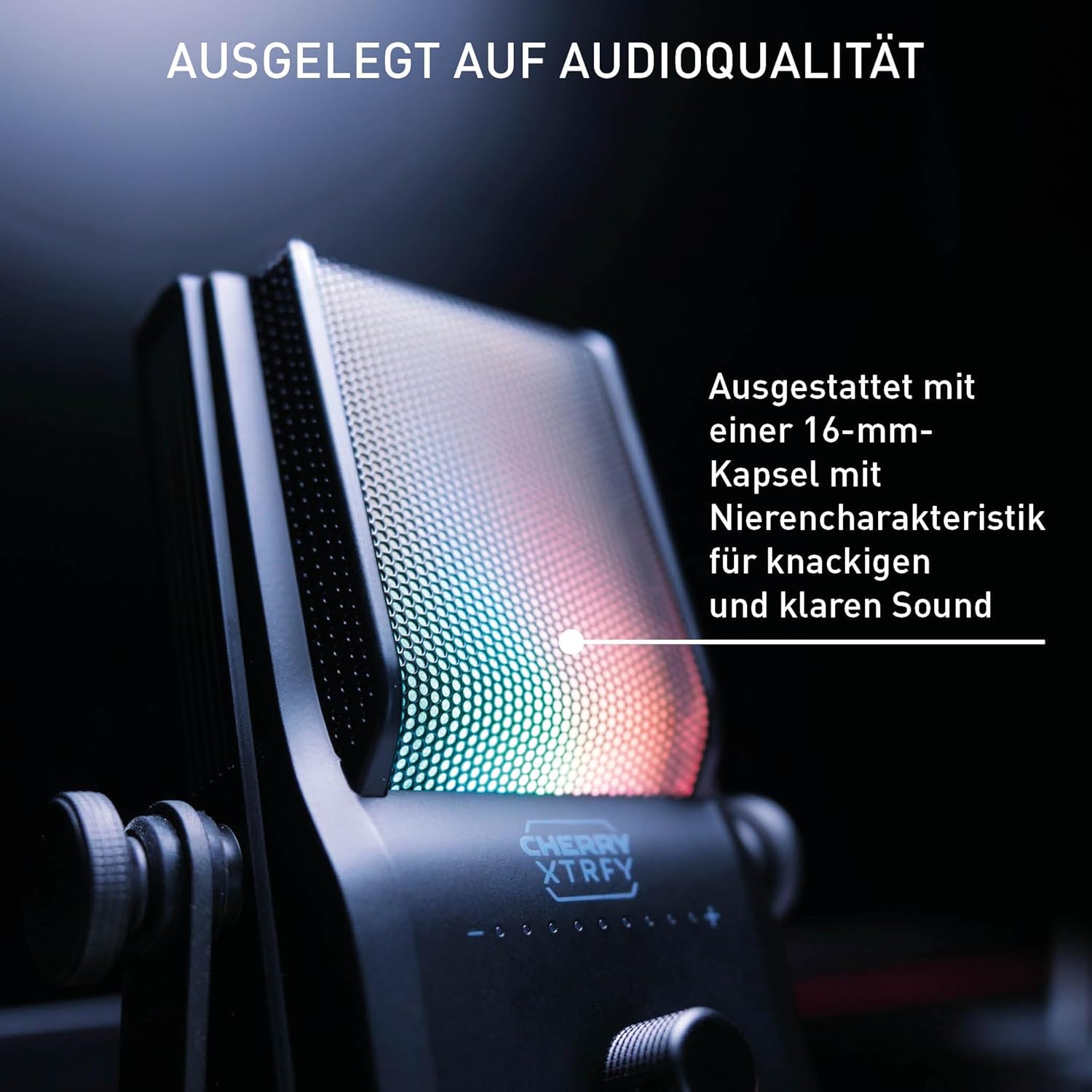CHERRY XTRFY NGALE R Premium USB Microphone for Recording, Gaming & Streaming, Cardioid, Plug & Play, Low-Cut Filter, RGB Lighting, Retro Design, Black
