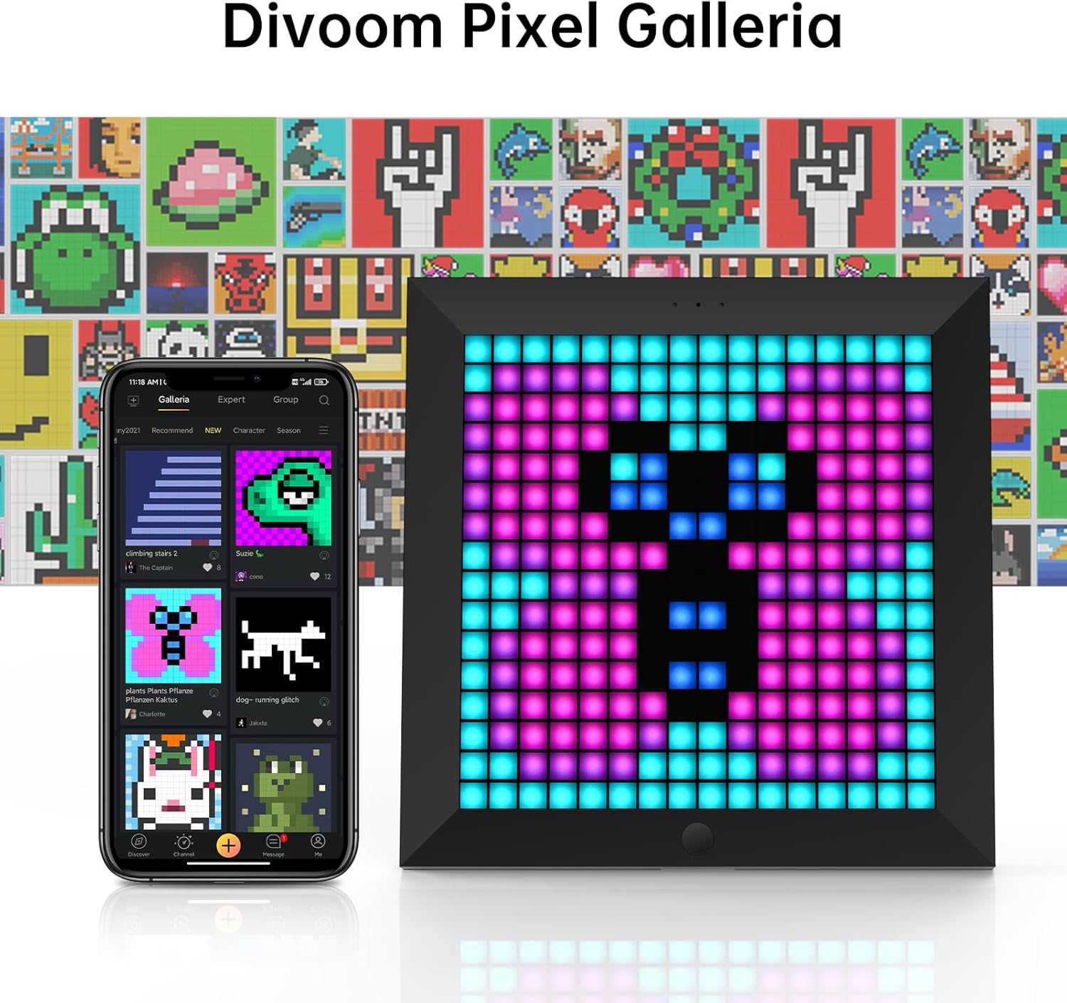 Erstellen Sie Pixelkunst – dieser Pixel-LED-Rahmen ist eine hervorragende Möglichkeit zum Trainieren. Auf der Registerkarte „Discovery“ haben Sie die Möglichkeit, Ihr eigenes Bild, Ihre eigene Animation und Ihren eigenen Text zu erstellen – alles mit einer Vielzahl von Optionen.