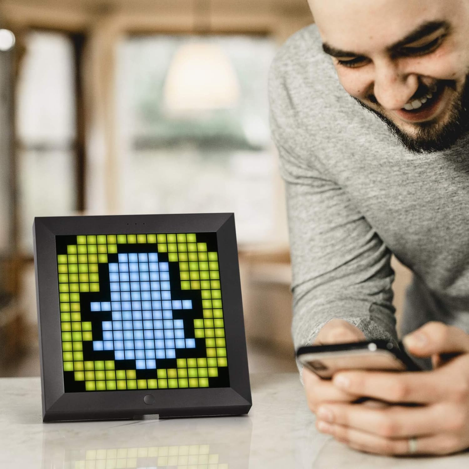 Wählen oder erstellen Sie ein Design, das aus Emojis, Gaming-Charakteren, Text, Retro-Lichteffekten usw. bestehen kann. Dieses 256-LED-Panel mit 16 Millionen Farben verleiht Ihrem Zuhause eine besondere Atmosphäre. Es ist ein großartiger Pixelrahmen, um Ihre Stimmung auszudrücken