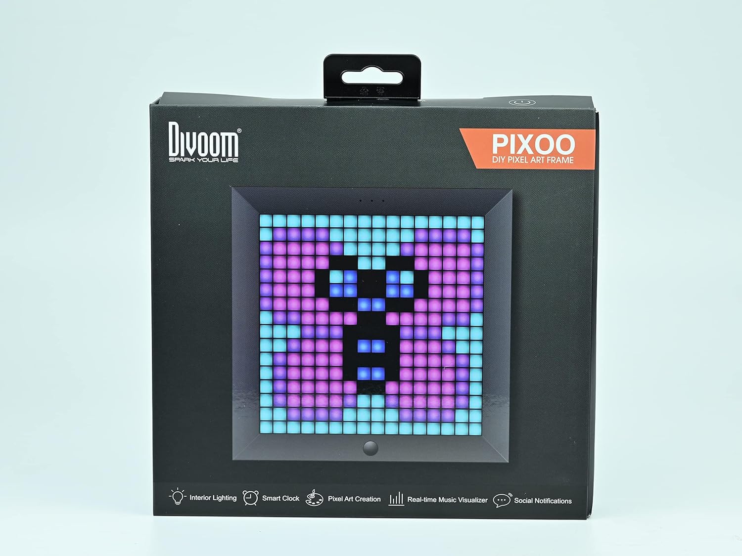 Divoom Pixoo Pixel Art Digital Frame, Programmable 16 x 16 RGB LED Panel, Smart Clock with Social Media Notification, 7.18 Inch Home Decor Calendar Clock for iOS & Android (Black)