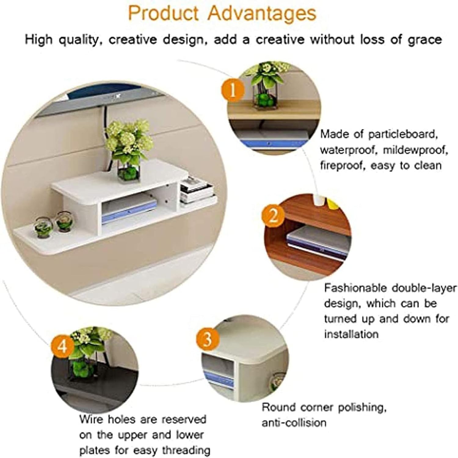 ★Humanisiertes Design, Kabel und Router bleiben für eine einfache Verarbeitung leer; Das perforierte Installationsdesign ist fest in die Wandoberfläche integriert und stabiler.