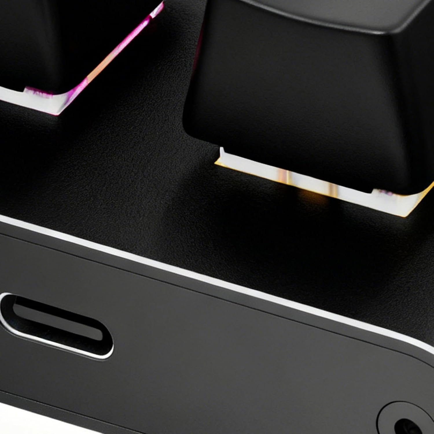 UNIVERSELLE KOMPATIBILITÄT Der Macro verfügt über eine zuverlässige Kabelverbindung mit Typ-C-Anschluss, die eine mühelose Plug-and-Play-Einrichtung für verschiedene Geräte ermöglicht. Es gewährleistet eine konstante Leistung ohne Verzögerung bei der Signalübertragung, sei es für die Programmierung, die Erstellung von Inhalten oder wettbewerbsorientierte E-Sport-Umgebungen, und bietet breite Anwendungsmöglichkeiten für ein breites Spektrum an Benutzeranforderungen.