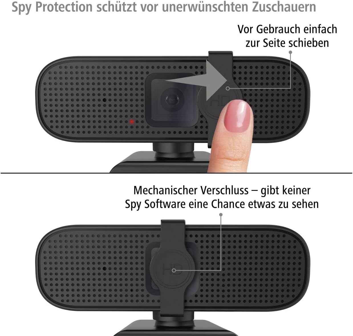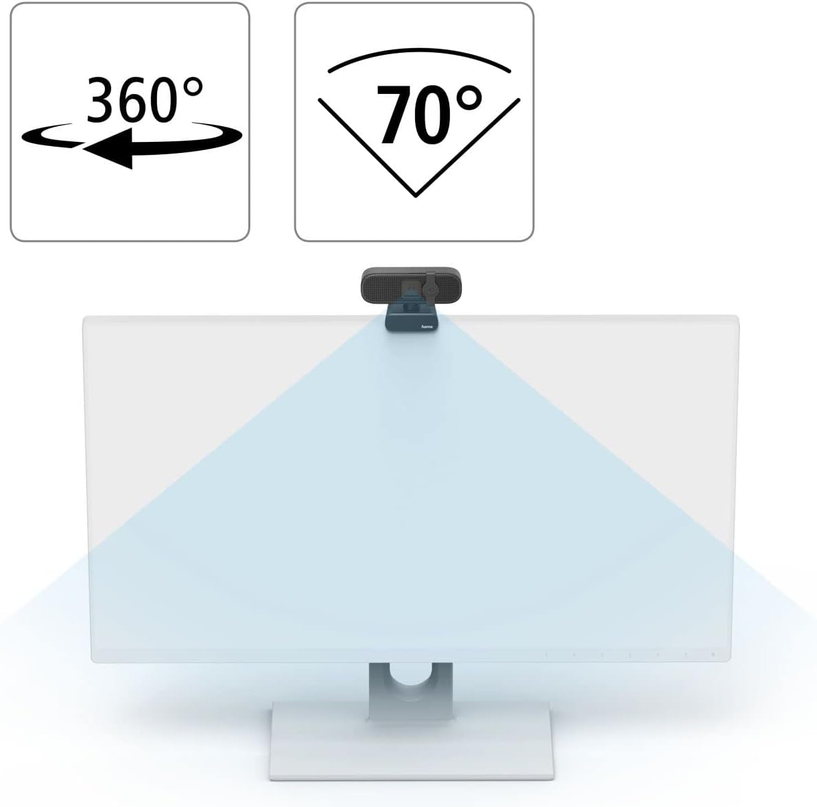 Hama External Camera for Laptop Webcam with Microphone PC with 1080P Full HD Webcam TV, PS5 Webcam MacBook 360 Degree Swivel, Camera Cover, 1/4 Inch Thread for Tripods)
