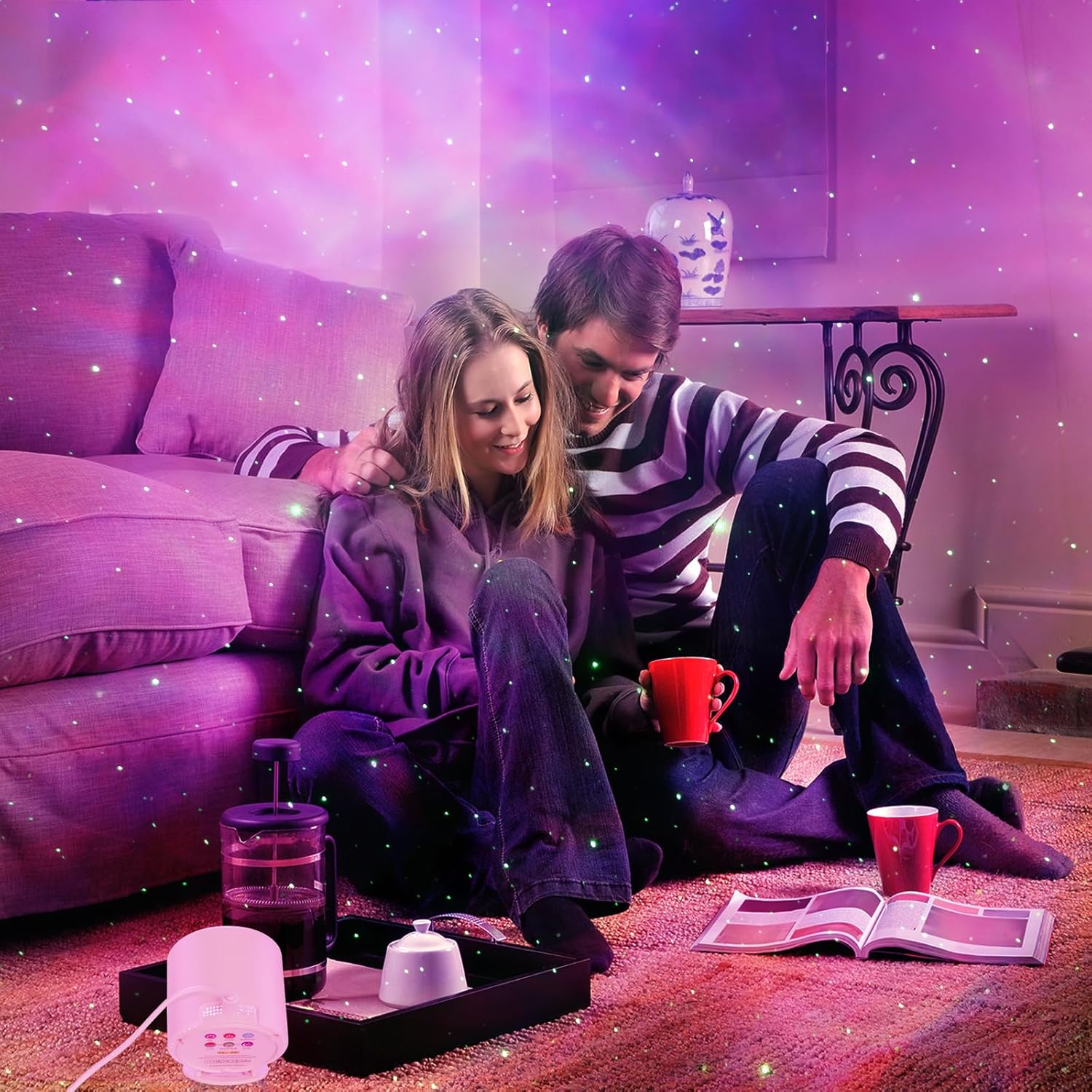 Sternprojektor und LED-Meereswellenprojektor: Dieser Projektor bringt die Milchstraße in den Raum, beobachtet die sternenklare Aurora-Lichtshow und hinterlässt einen tiefen Eindruck! Die funkelnden Sterne und Wolken werden dynamisch an die Decke oder Wand projiziert. Kombinieren Sie mehrere Farben, um eine hervorragende Atmosphäre für einen schwach beleuchteten Raum zu schaffen.