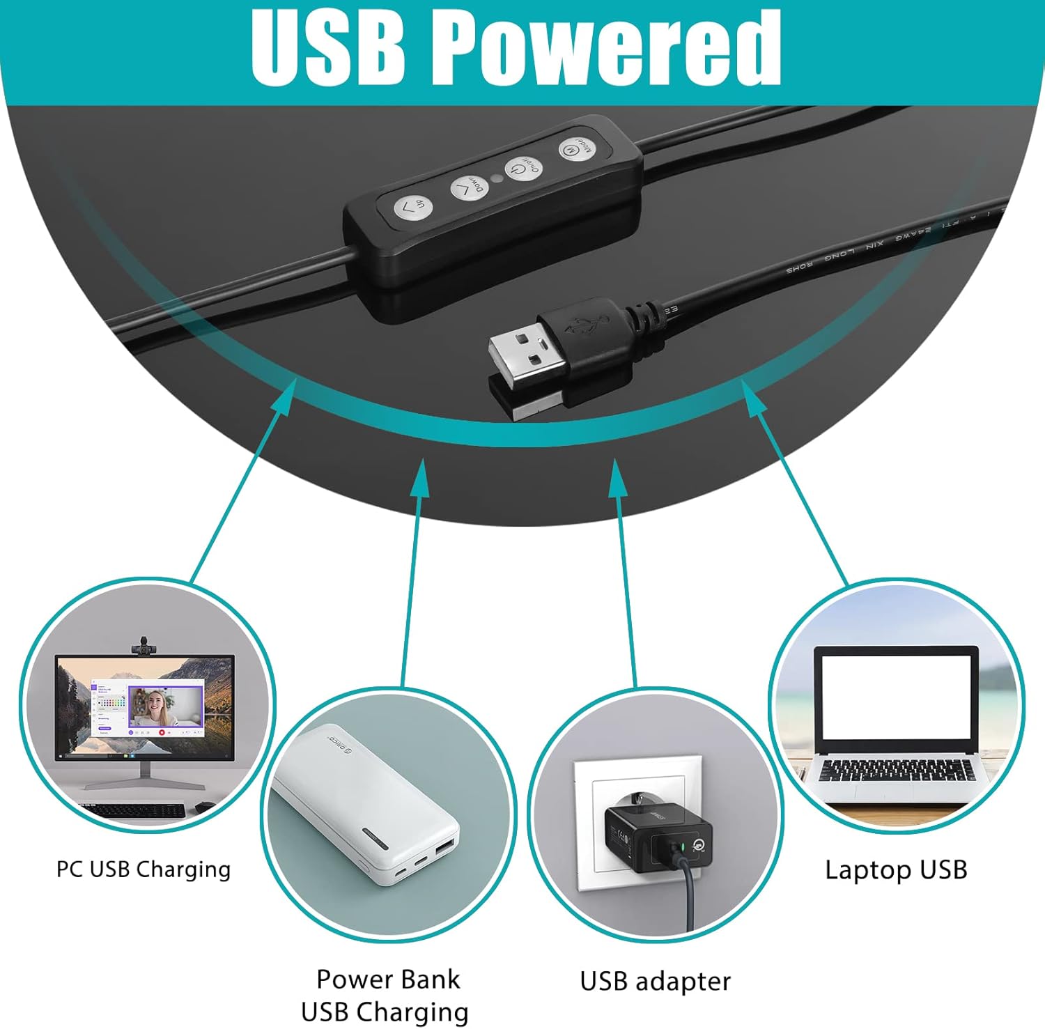 USB-betriebene Leuchten: Diese Leuchte wird über ein USB-Kabel (5 V, 2 A) mit Strom versorgt und kann an einen Computer, ein mobiles Netzteil oder eine USB-Steckdose angeschlossen werden. Oder schließen Sie zusätzlich den passenden Adapter an.