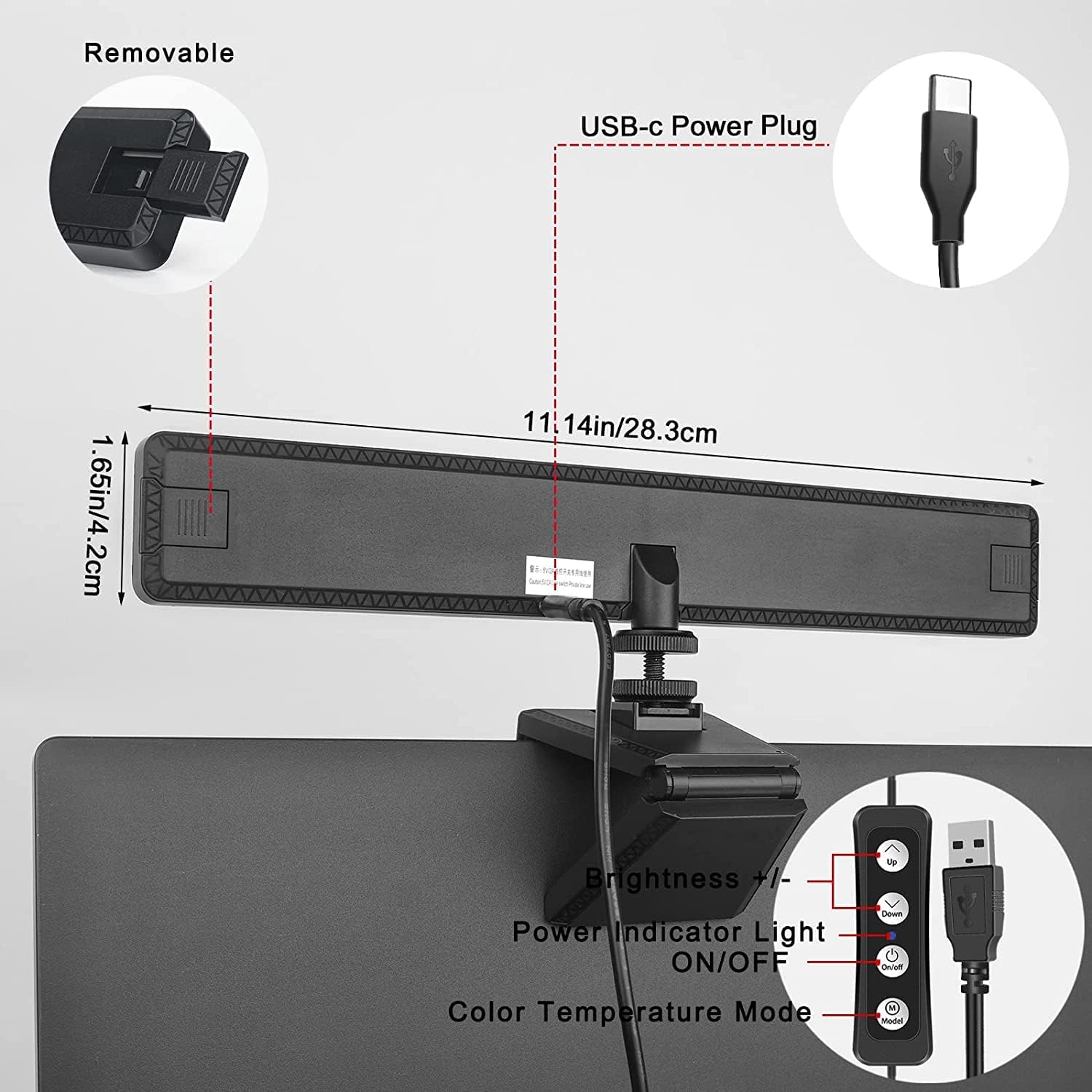 Multi-Speed-Einstellung: Diese Videokonferenzlampe verfügt über 66 Lampenperlen. 3 verschiedene Beleuchtungsmodi: weißes Licht, warmes Licht und natürliches Licht. Jeder Modus verfügt über 10 Helligkeitsarten. CRI 95 + 0,2500K-9000K