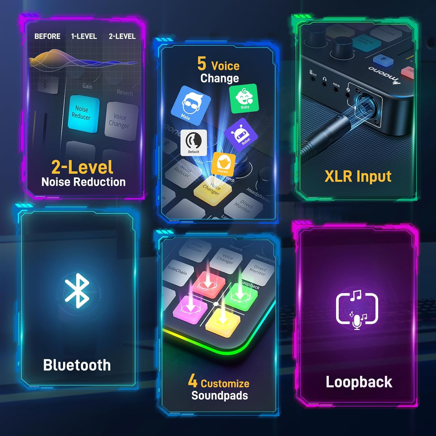 PASSEN SIE IHREN SOUNDEFFEKT AN: Mit der Sprachänderungsfunktion können Sie Ihren Gaming-Streams eine ganz neue Dimension verleihen. Sie können sich in die Rolle einer Frau, eines Mannes, eines Babys oder eines Roboters verwandeln und Ihren Zuschauern ein ansprechendes und unterhaltsames Erlebnis bieten. Verwenden Sie benutzerdefinierte Soundpads, um Ihren Sprachnamen zu erstellen, die Popularität schnell zu steigern, Potenziale freizusetzen und die Reichweite Ihres Publikums zu vergrößern. Sie können sogar die Hall- und Sidechain-Funktionen nutzen, um Ihren Teamkollegen ein Lied vorzusingen, und sie werden von Ihrem Gesang begeistert sein