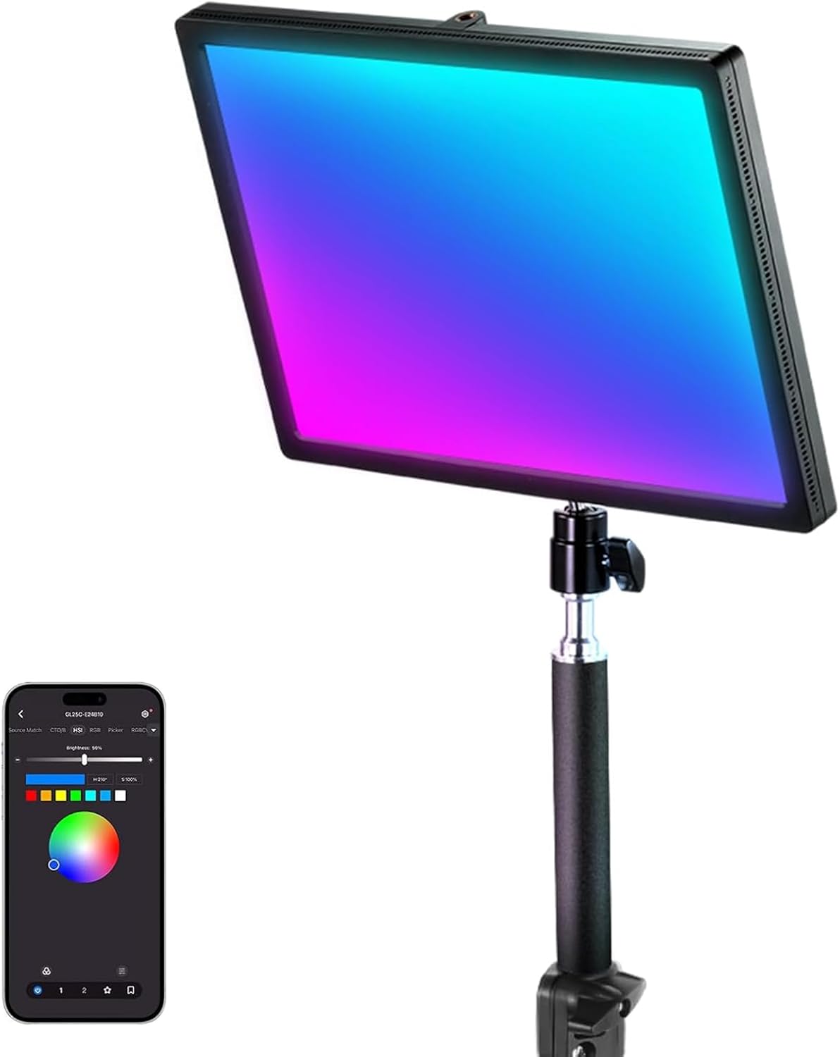 NEEWER GL25C LED RGB Streaming Key Light, APP/PC/Stream Deck Control, 25 W, 2500 Lux/0.5 m, 2900 K-7000 K, CRI95+/TLCI97+, Full RGB Dimmable, Edge-Emitting, Quiet Webcam Video Light with Table Stand