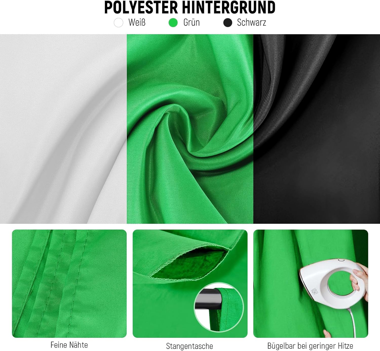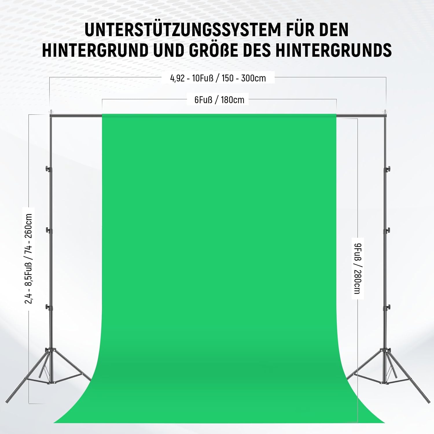 Vielseitiges Fotostudio-Hintergrundsystem-Set: Das Set besteht aus 1 x Polyester-Hintergrund (1,8 x 2,8 m) (schwarz, weiß und grün), 6 x Hintergrundklammern und 1 x Hintergrund-Trägersystem (2,6 x 3 m) und ist ideal für TV-Produktionen, Filmaufnahmen, Videoproduktionen und digitale Fotografie. Die beiden Tragetaschen eignen sich hervorragend zum Transport von Lichtstativen, Regenschirmen und anderem Zubehör, das für Content-Ersteller und Influencer wichtig ist
