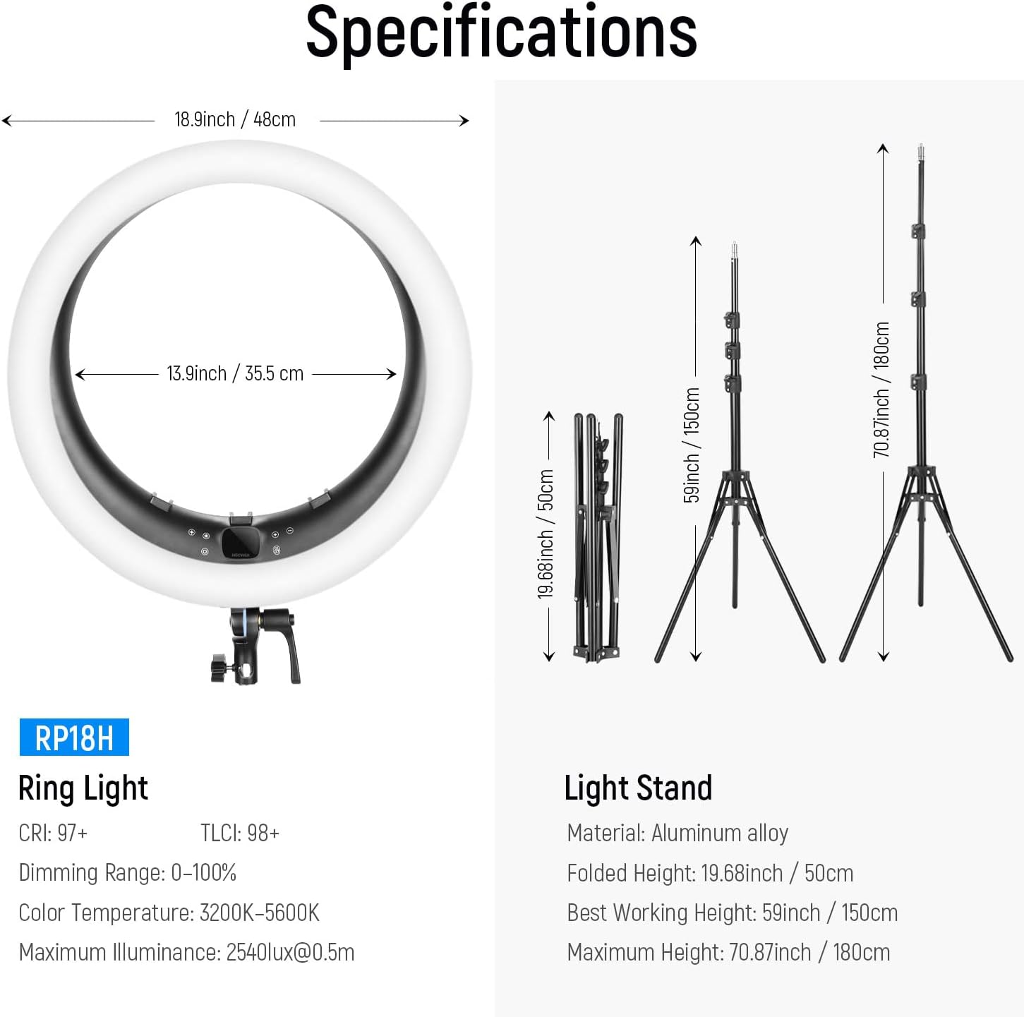 NEEWER Ring Light RP19H 19 Inch with Stand and 3 Phone Holders, 2.4G Control, 1% Continuous Dimming, LCD and Touch Control, 42W CRI 97+ 2540 Lux, for Streaming Home Office Zoom Call Lighting