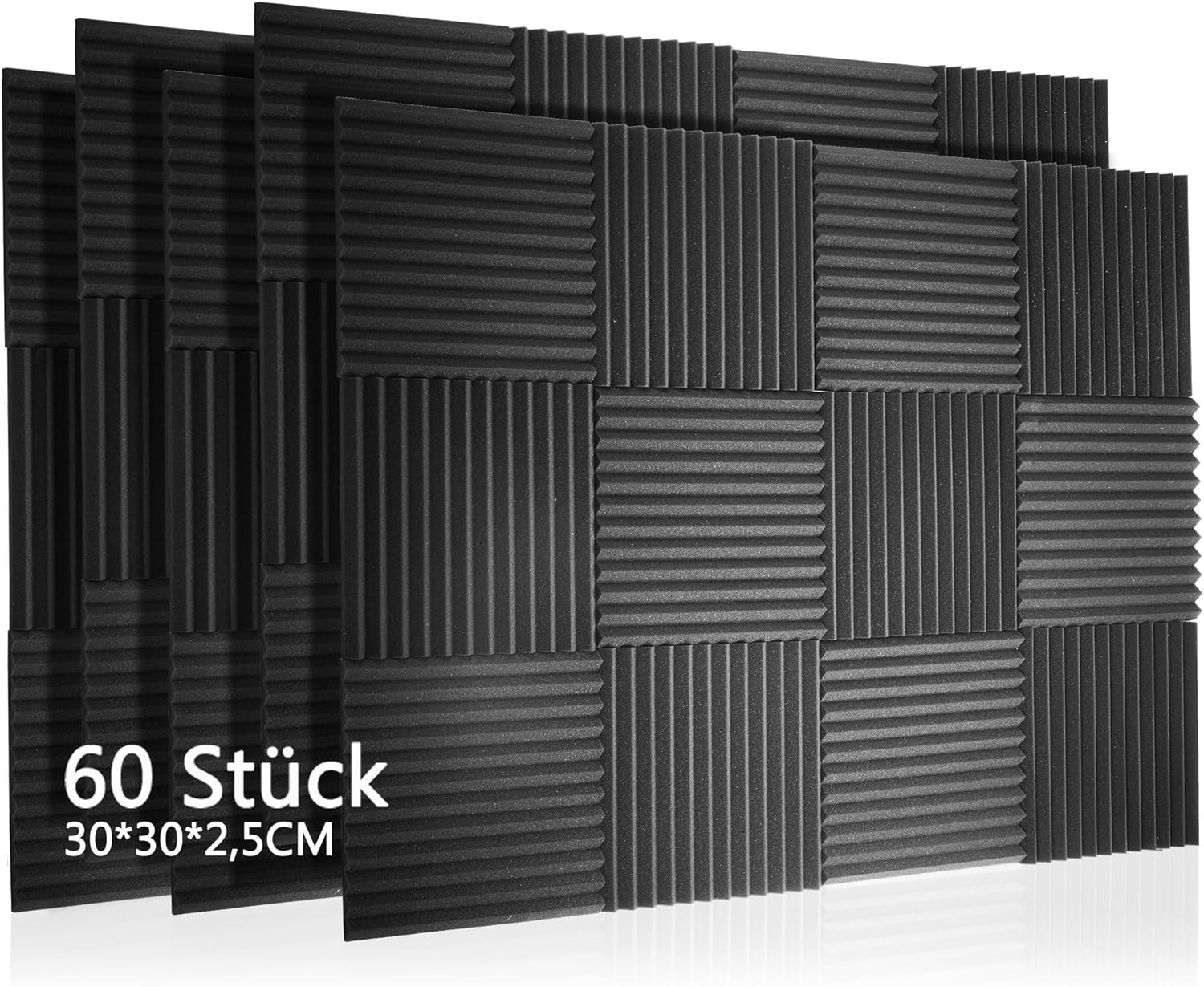Pack of 60 Acoustic Foam Mats Foam Tiles Sound Insulation Mat Sound Insulation for Wall, Studio, Podcasts, Recording Studios, Office, Acoustics, 30 x 30 x 2.5 cm (Pack of 60)