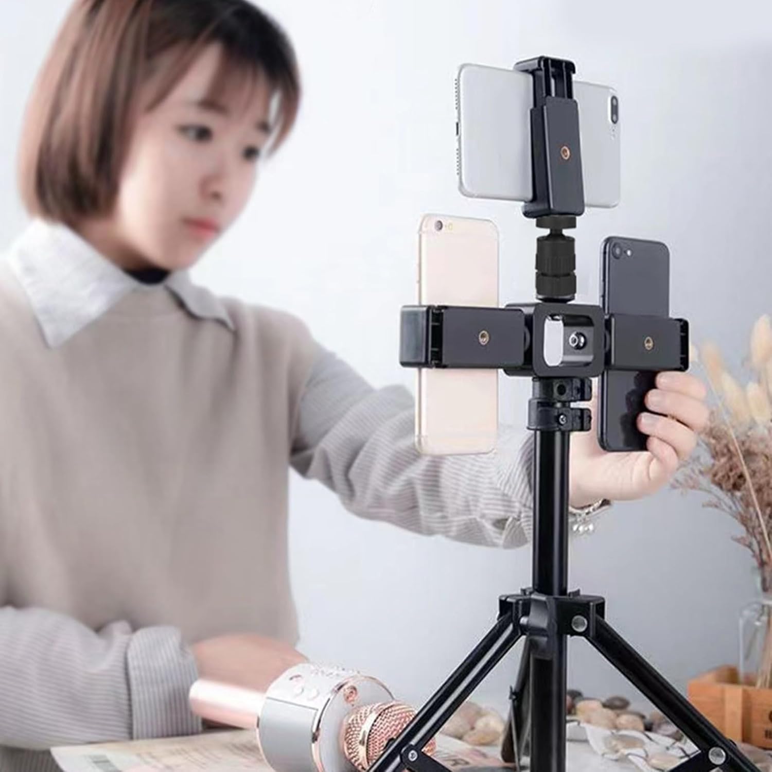 Phone Holder Mount Adapter Vlog Studio Live Streaming Tool for Phones Fill Lightweight Microphones 3-Position Phone Stand