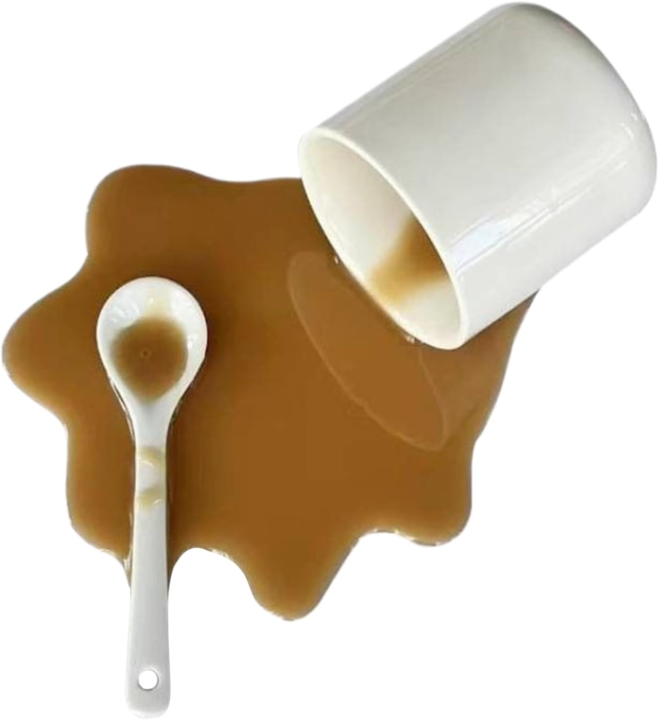 HUMORVOLLER STÄNDER MIT KAFFEE-THEMA Dieser Handyständer hat ein dynamisches Aussehen von verschüttetem Kaffee und erzeugt einen dreidimensionalen Effekt, der Schreibtische mit verspieltem Charme verschönert und stabilen Halt für müheloses Betrachten in Büro- und Wohnräumen bietet