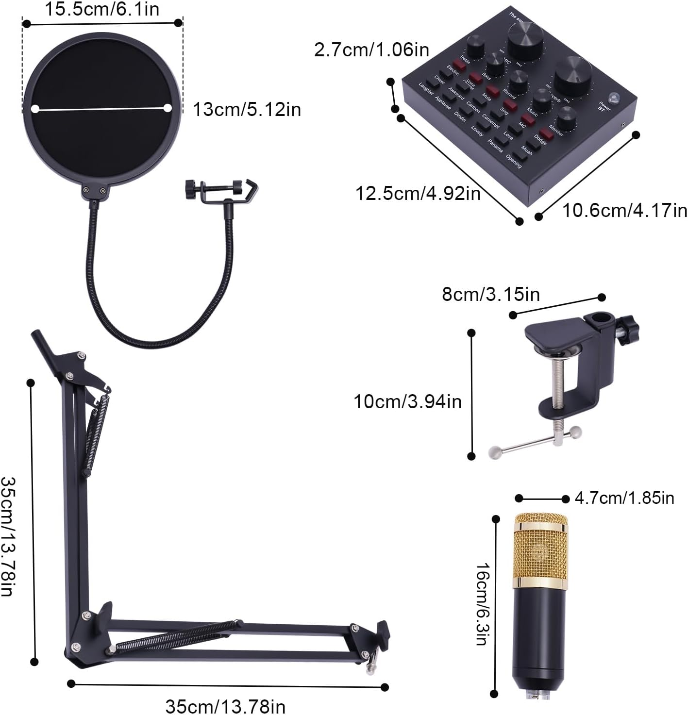 Mit dem Aufkommen der Live-Streaming-Branche unterrichten viele Menschen Lehrpläne, verkaufen Produkte, vermitteln Wissen usw. über Live-Übertragungsplattformen. Daher ist ein praktisches Podcast-Ausstattungspaket notwendig. Es besteht aus hochwertigem ABS und Metall und ist robust und langlebig. Und die verschiedenen Klangmodi und das komplette Kit können Ihren unterschiedlichen Anforderungen gerecht werden. Gleichzeitig kann die hochauflösende Tonqualität den Zuschauern ein klareres Erlebnis bieten, was sie zu einem guten Assistenten für Ihre Live-Übertragungsarbeit macht.
