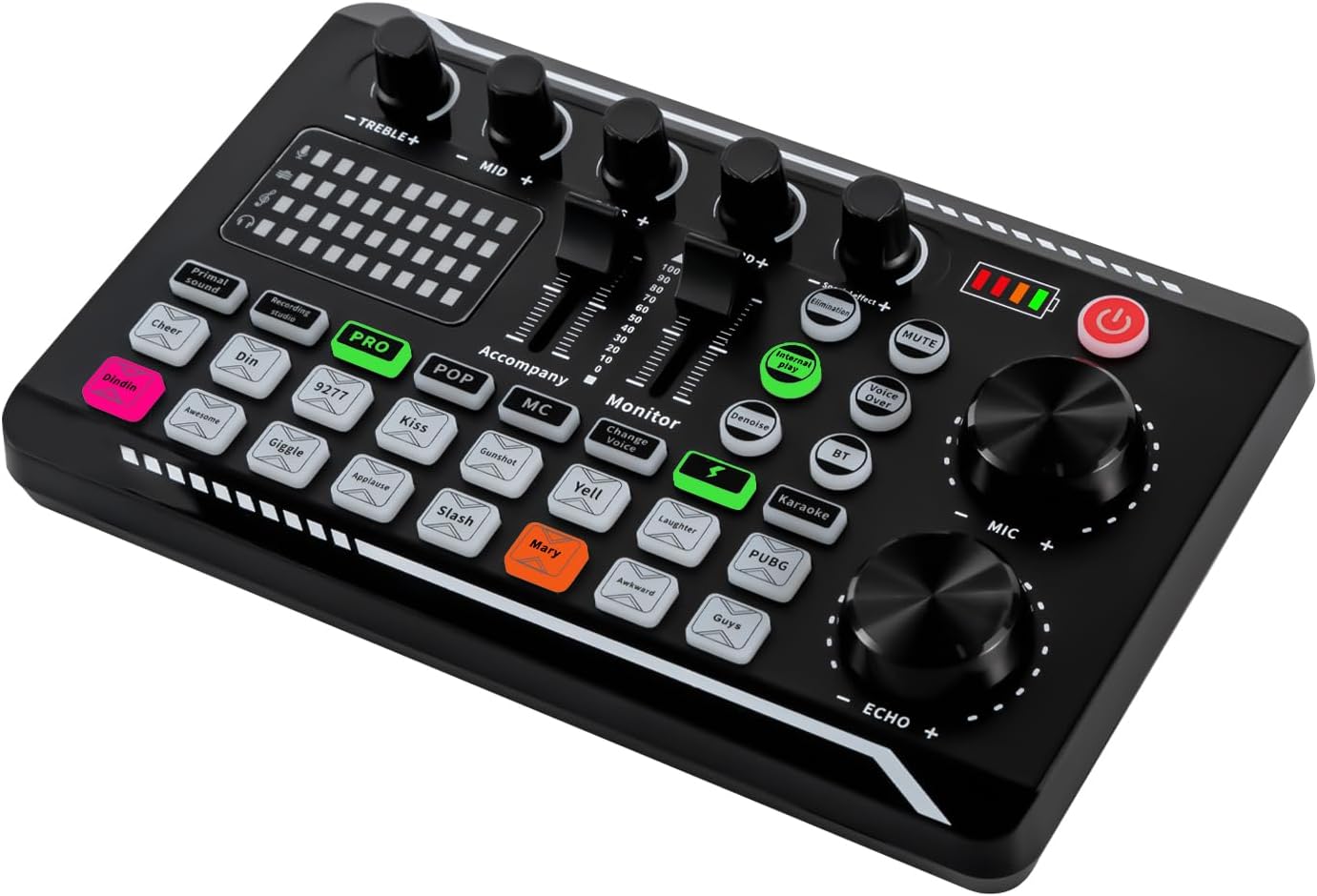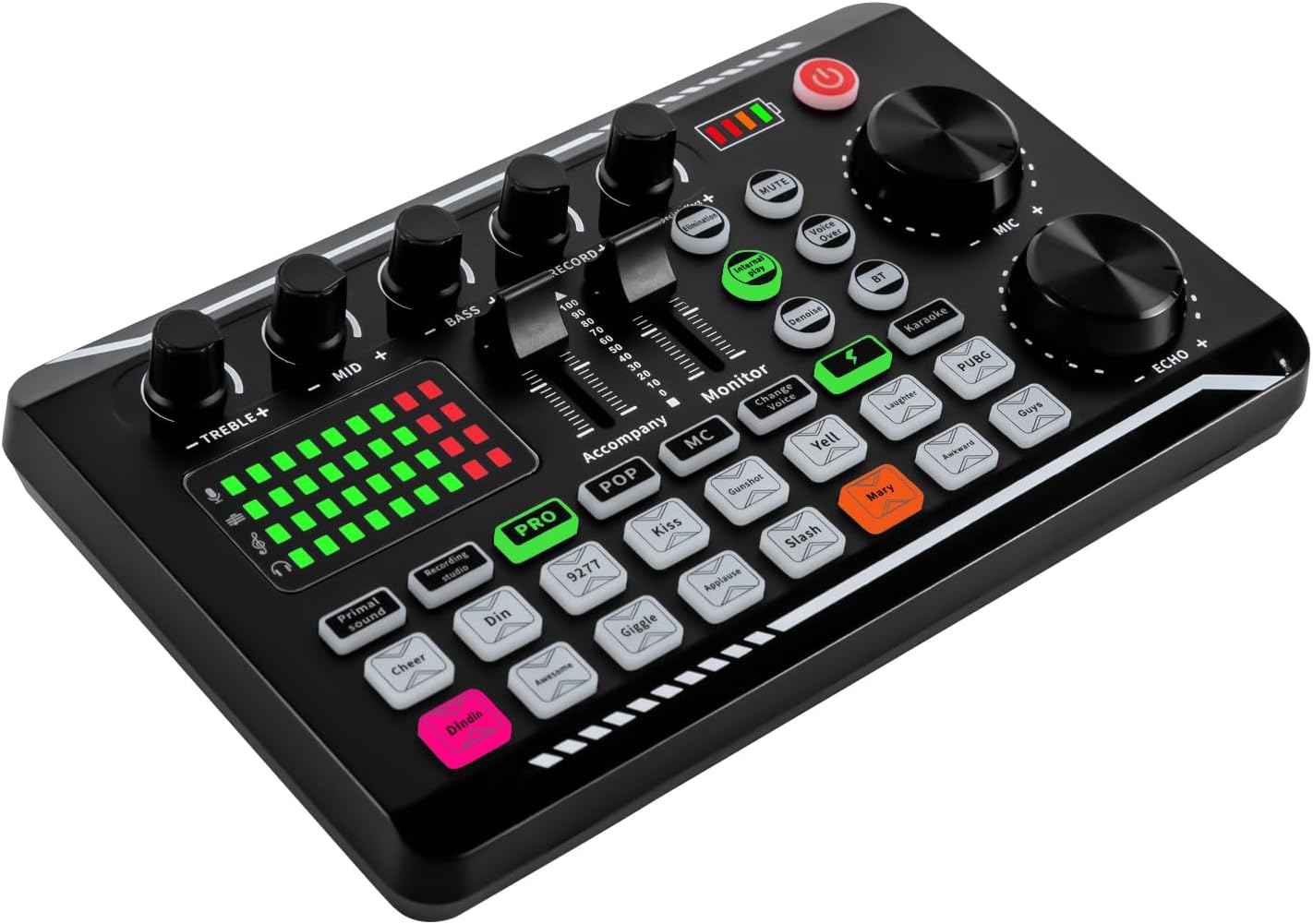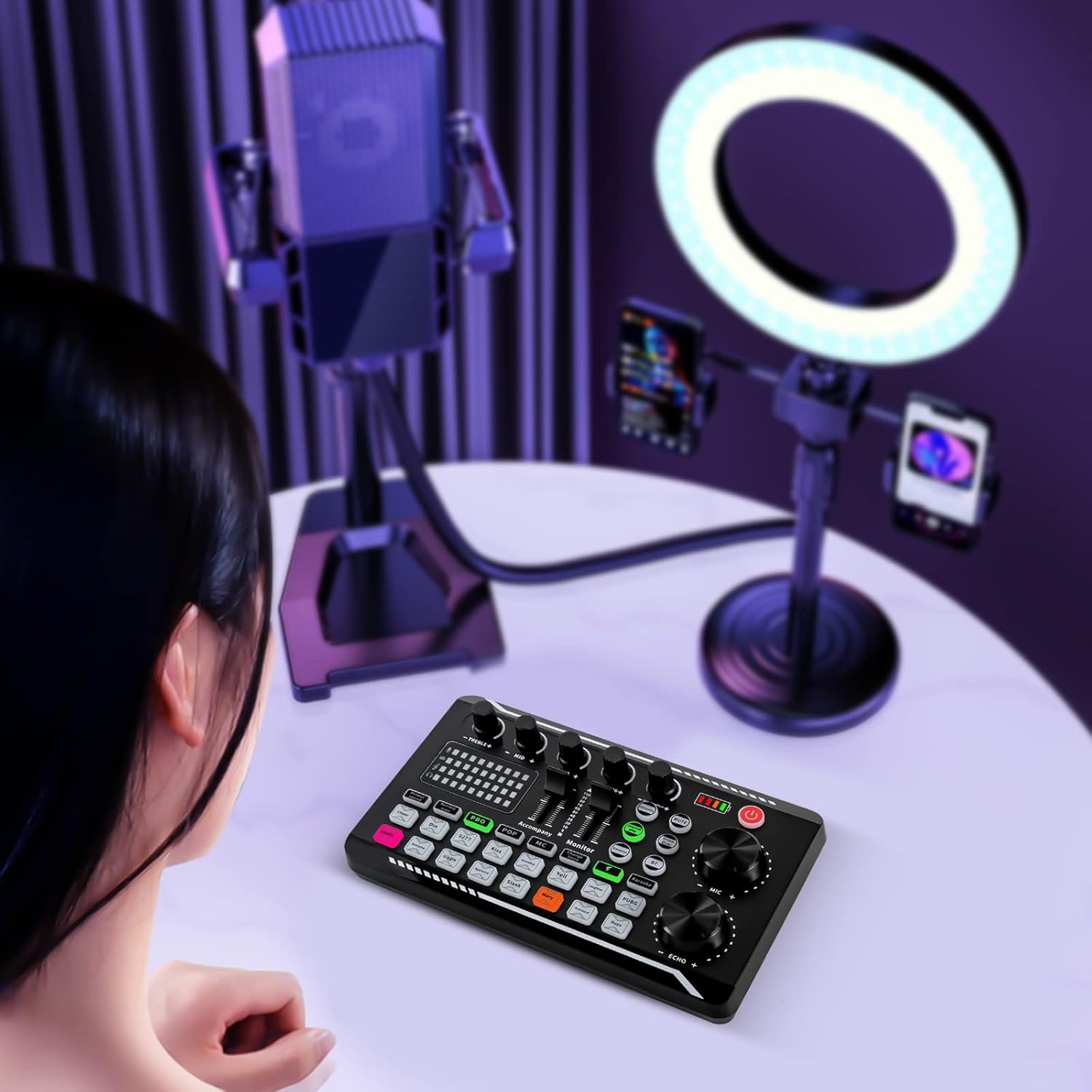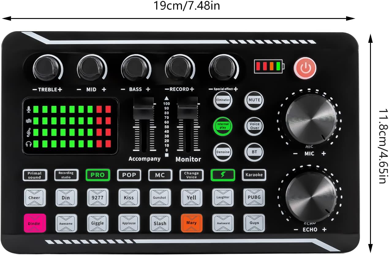 Professional Sound Card – Bluetooth & USB-C with 12 Sound Effects + LED Lighting – 1200 mAh Battery (8h) for Live Streaming/Karaoke – Compatible with PC/iOS/Android