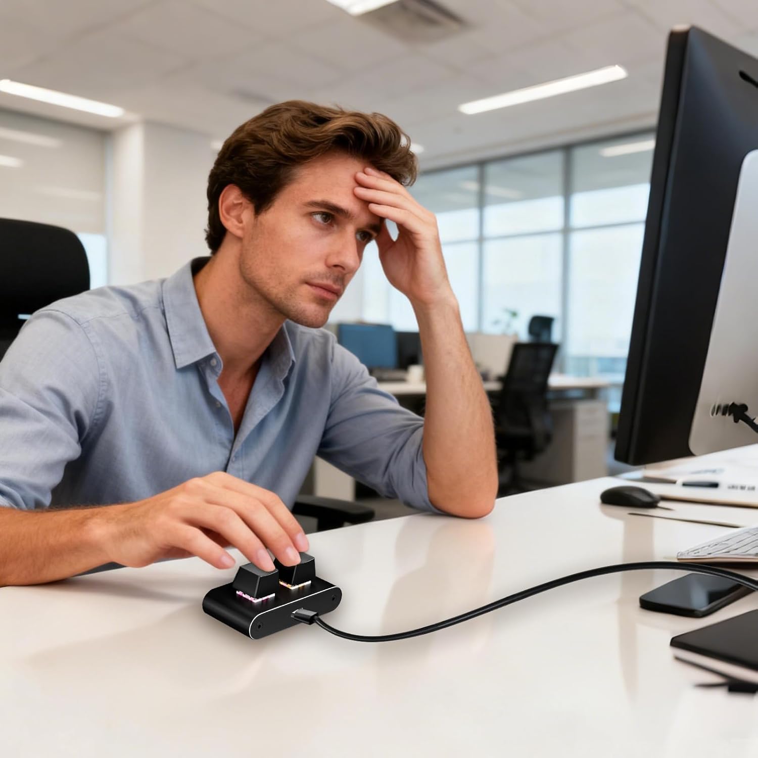 Mit ergonomischem Zwei-Tasten-Layout entworfen, unterstützt diese programmierbare effiziente Eingabeoperationen. Sie ist ideal zur Steigerung der Produktivität bei Büroaufgaben wie dem Tippen von Berichten oder der Verwaltung von Tabellenkalkulationen und fördert flüssige Arbeitsabläufe.