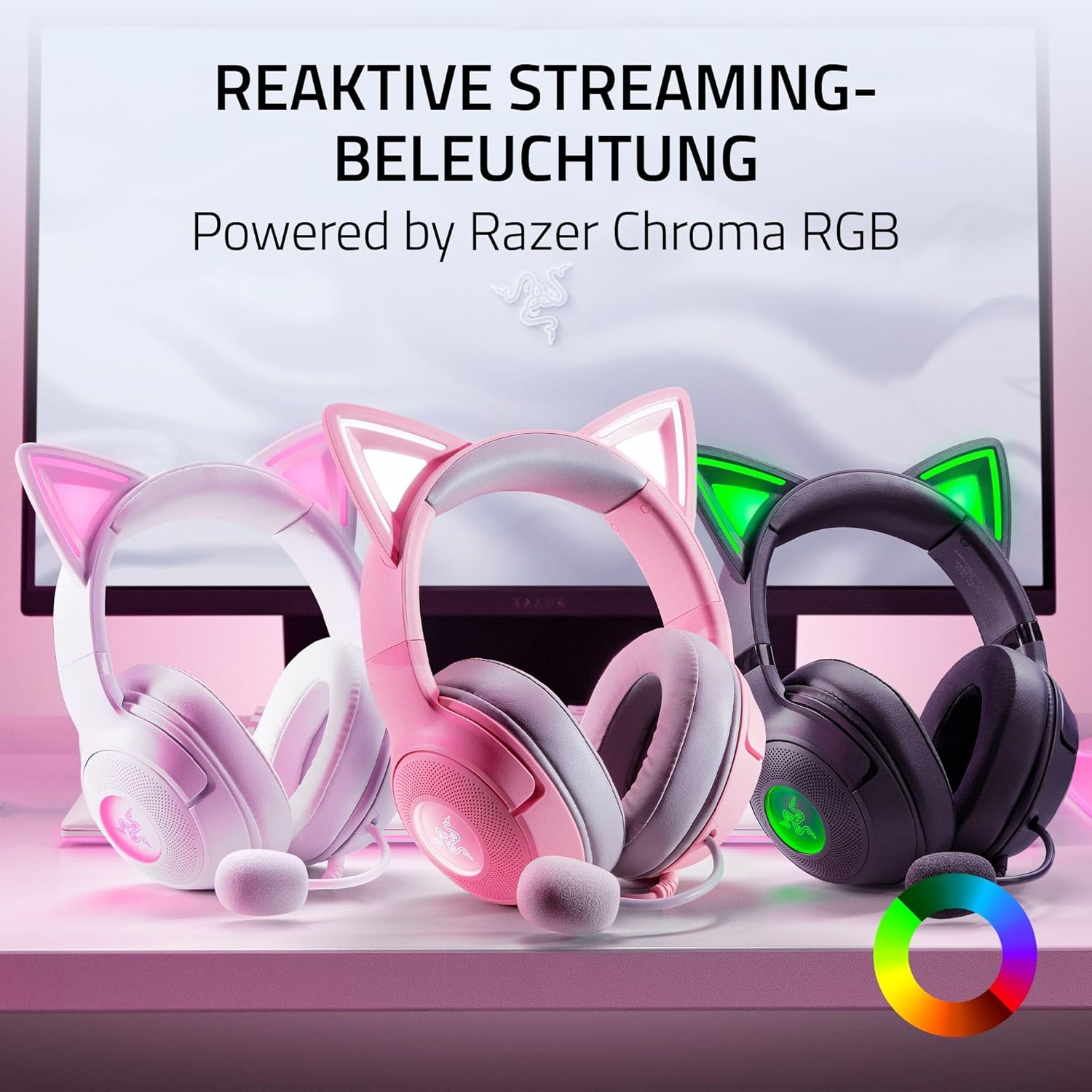 Razer Kraken Kitty V2 Wired RGB Headset with Cat Ears (Reactive Streaming Lighting, HyperClear Micro, Triforce 40 mm Driver, 7.1 Surround Sound) Quartz