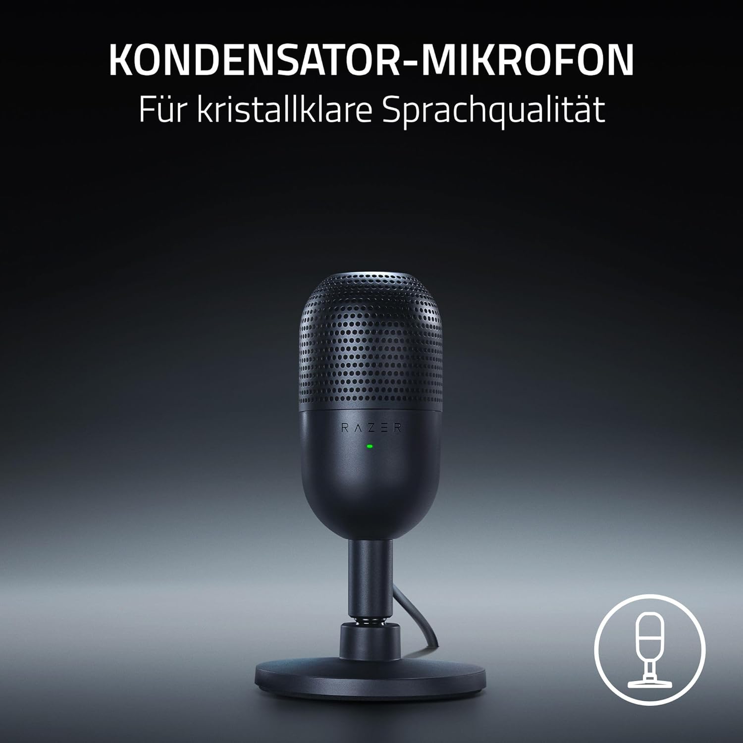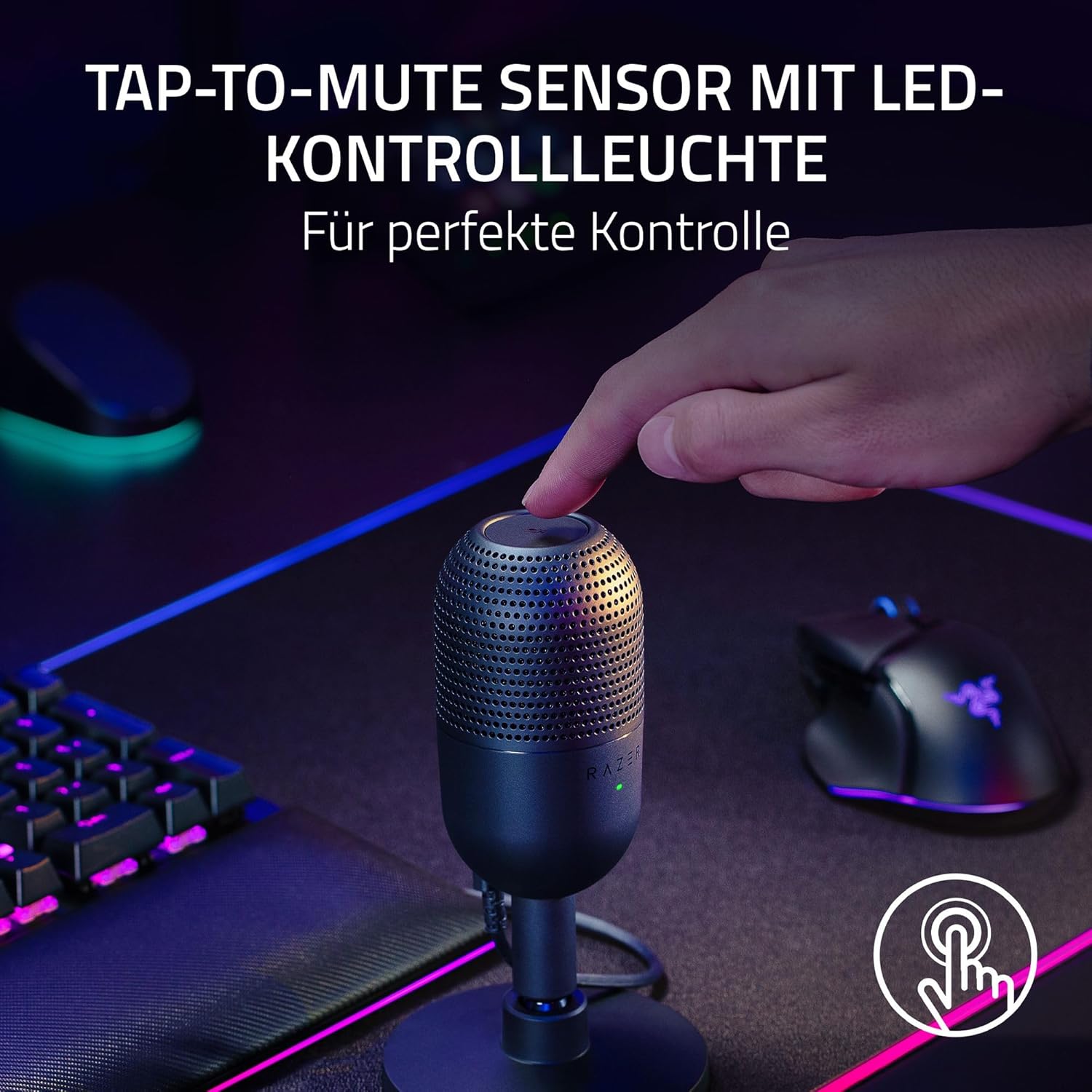 Razer Seiren V3 Mini – Ultrakompaktes USB-Mikrofon (14mm Supernieren Kondensatormikrofon, Tap-to-Mute-Sensor mit LED-Anzeige, integrierter Stoßdämpfer, Plug-and-Play Design) Schwarz