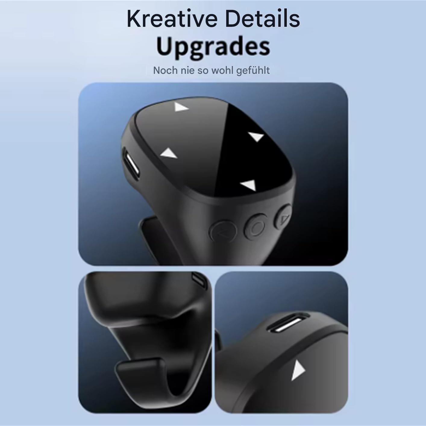 KOMPAKTE SCROLL-LÖSUNG Als tragbare, tragbare Fernbedienung kombiniert sie minimalistisches Design mit der Vielseitigkeit eines Outdoor-Werkzeugs. Der Ringcontroller bietet ein einzigartiges Steuerungserlebnis für alltägliche Aufgaben – platzsparend und funktional.