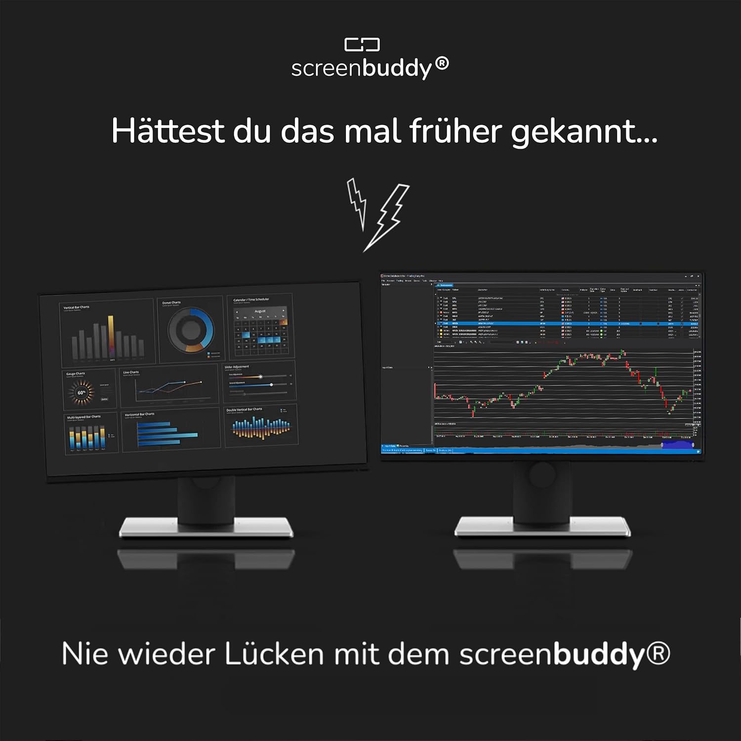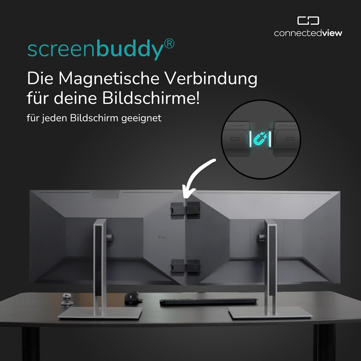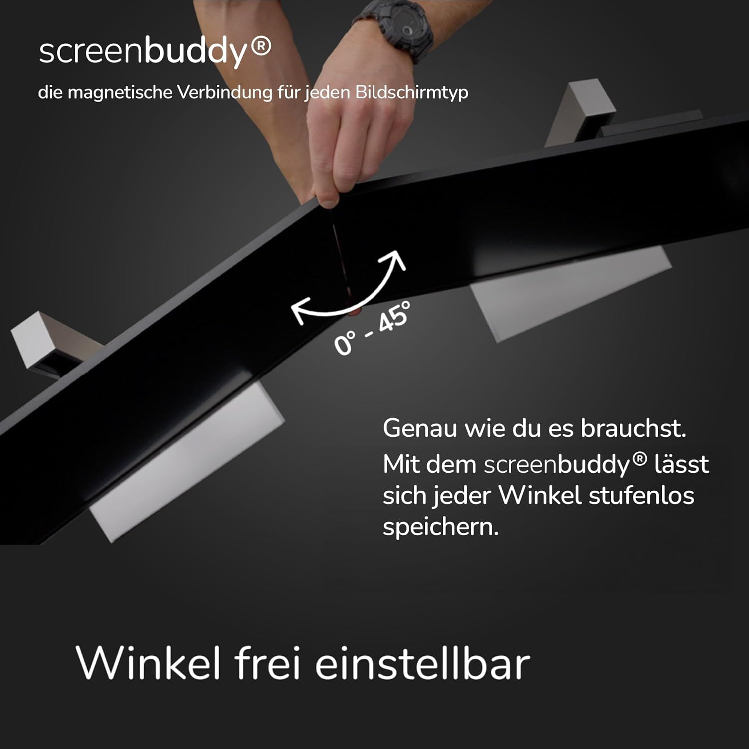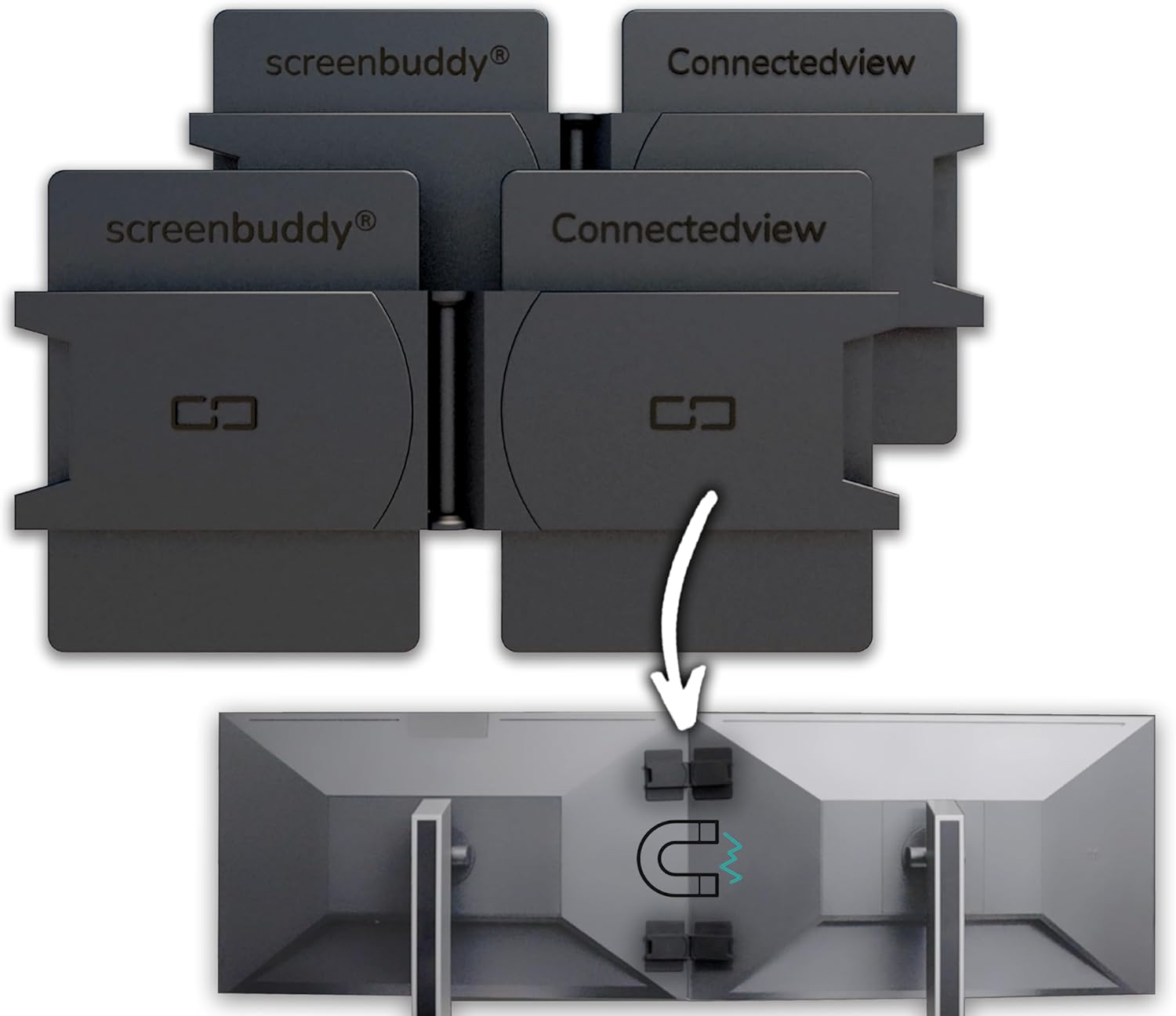 Patentierte Lösung – Monitore ausrichten war nie einfacher – mit dem screenbuddy können Sie dank der cleveren und innovativen Magnettechnologie ganz einfach mehrere Monitore nahezu nahtlos miteinander verbinden