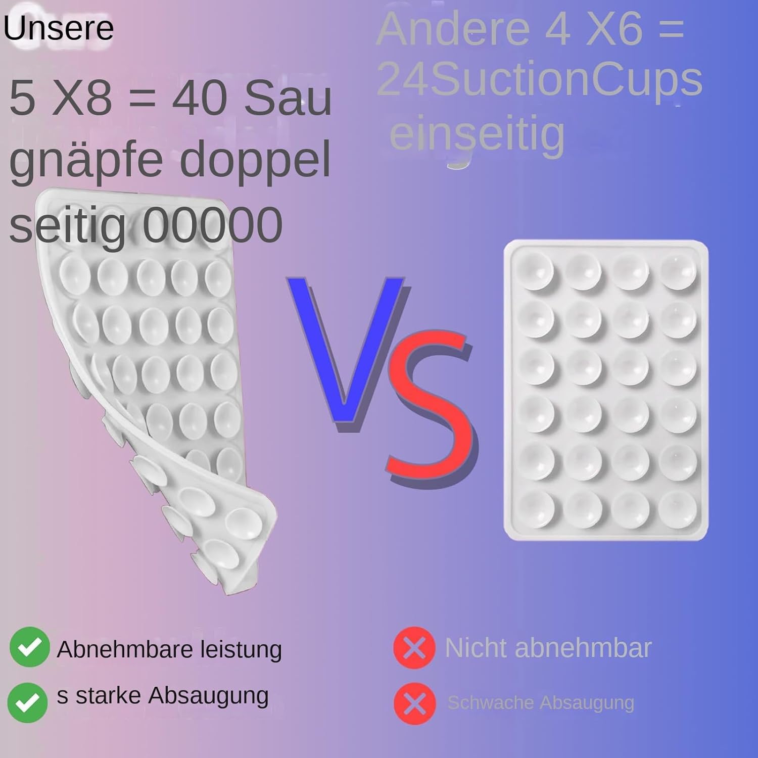 Starker Halt: Inspiriert von der natürlichen Haftung des Saugers, mit 40 unabhängigen Saugnäpfen auf beiden Seiten, die für stärkere Saugkraft und Stabilität sorgen und aus praktischen Gründen leicht abnehmbar sind